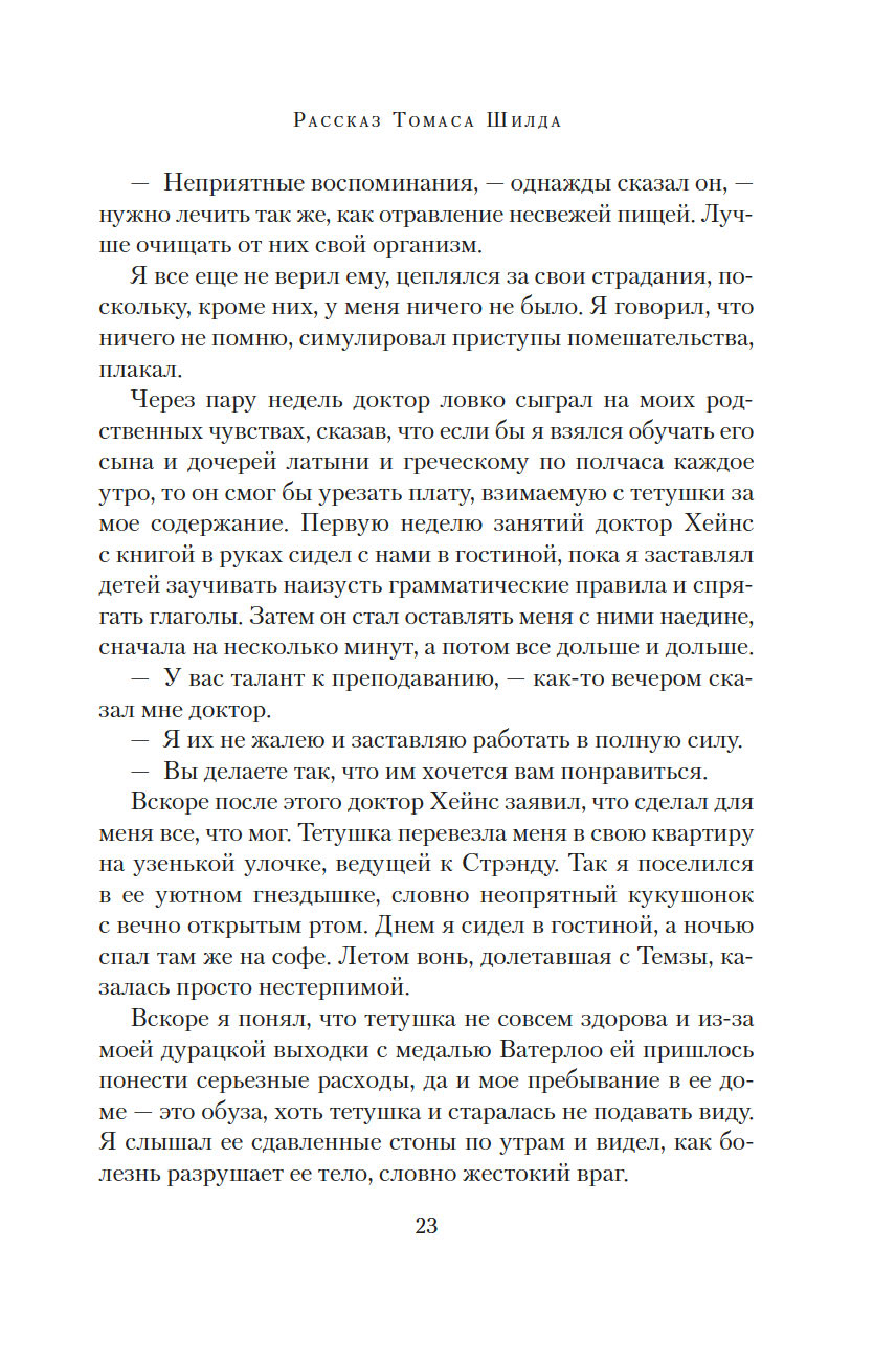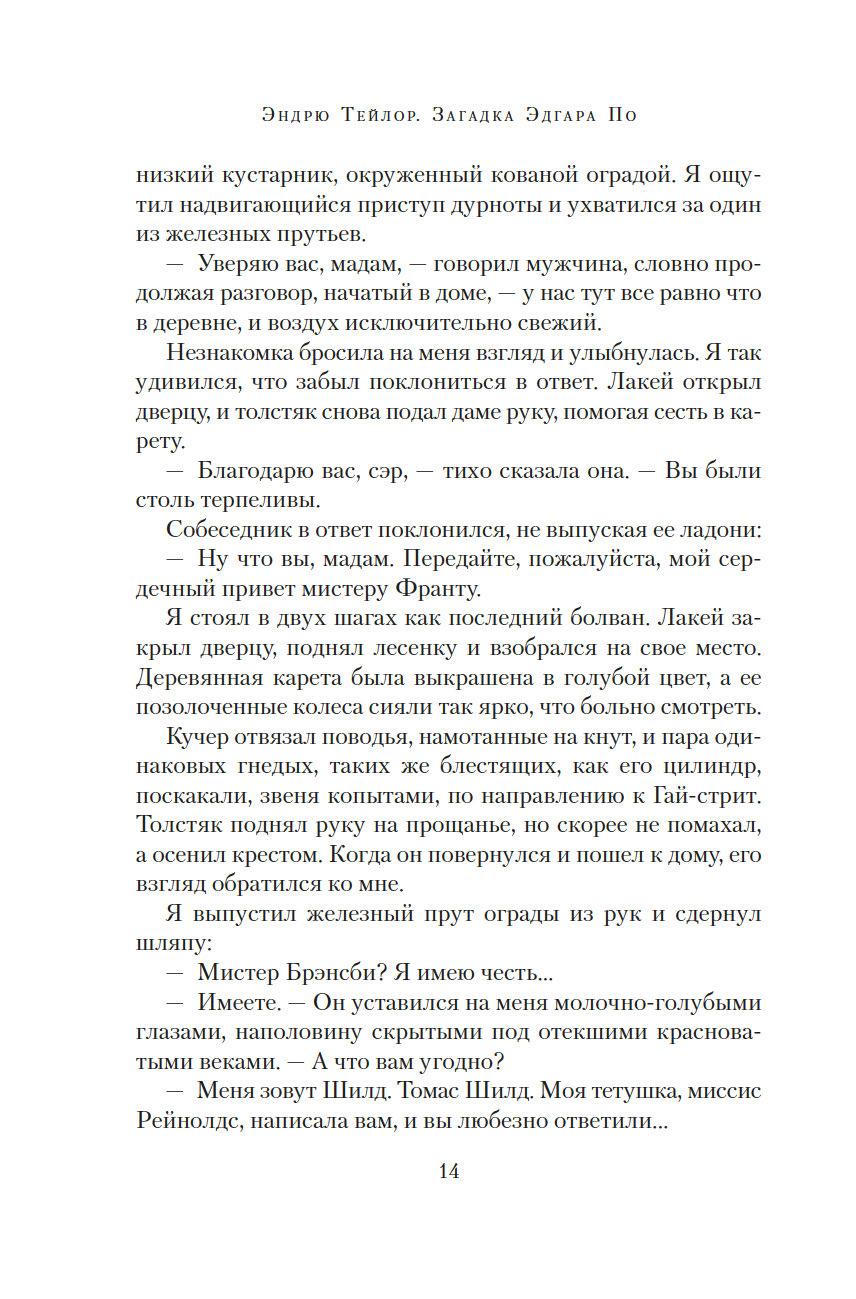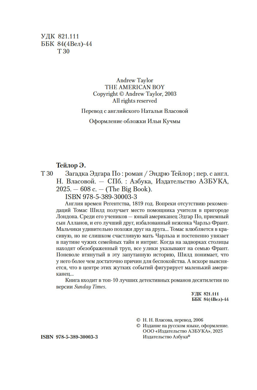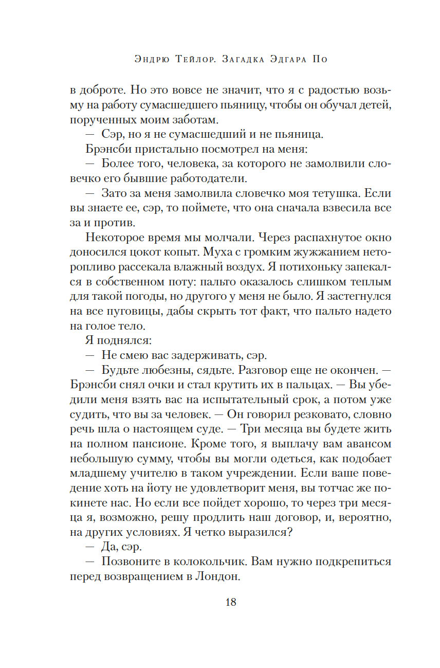 Англия времен Регентства, 1819 год. Вопреки отсутствию рекомендаций Томас Шилд получает место помощника учителя в пригороде Лондона. Среди его учеников – юный американец Эдгар По, приемный сын Алланов, и его лучший друг, избалованный неженка Чарльз Франт. Мальчики удивительно похожи друг на друга... Томас влюбляется в красивую, но не слишком счастливую мать Чарльза и постепенно увязает в паутине чужих семейных тайн и интриг. Когда на задворках столицы находят обезображенный труп, все улики указывают на семью Франт. Поневоле втянутый в эту запутанную историю, Шилд понимает, что у него более чем достаточно причин для беспокойства. А вскоре выясняется, что в центре этих жутких событий фигурирует маленький американец...