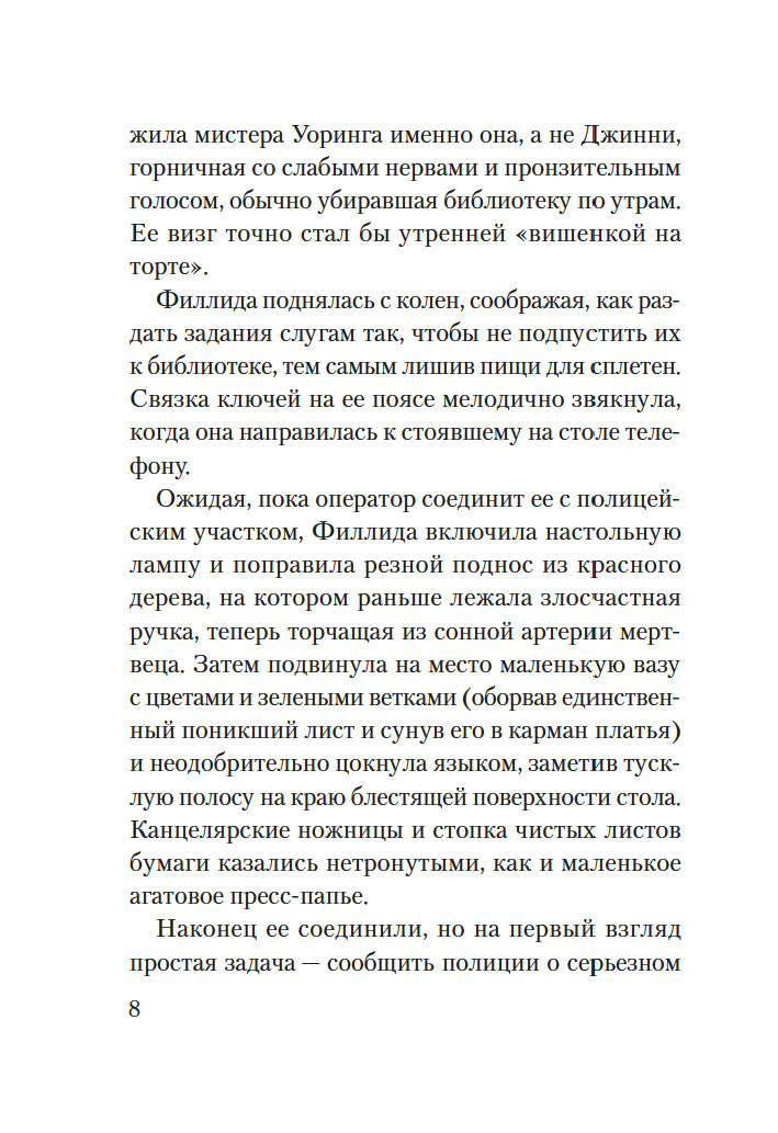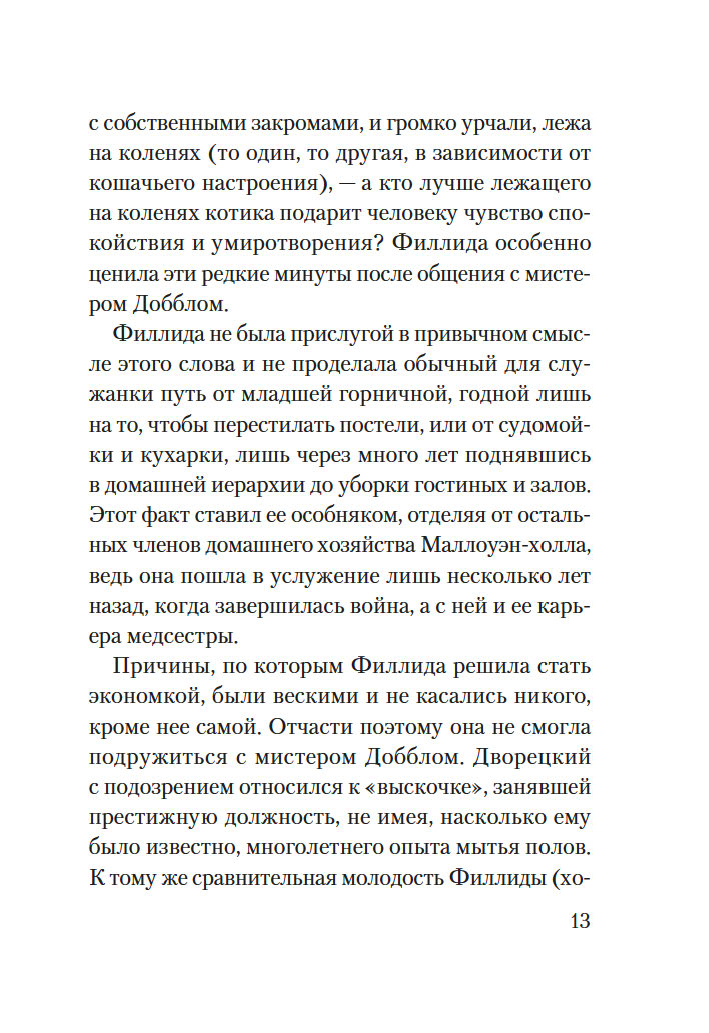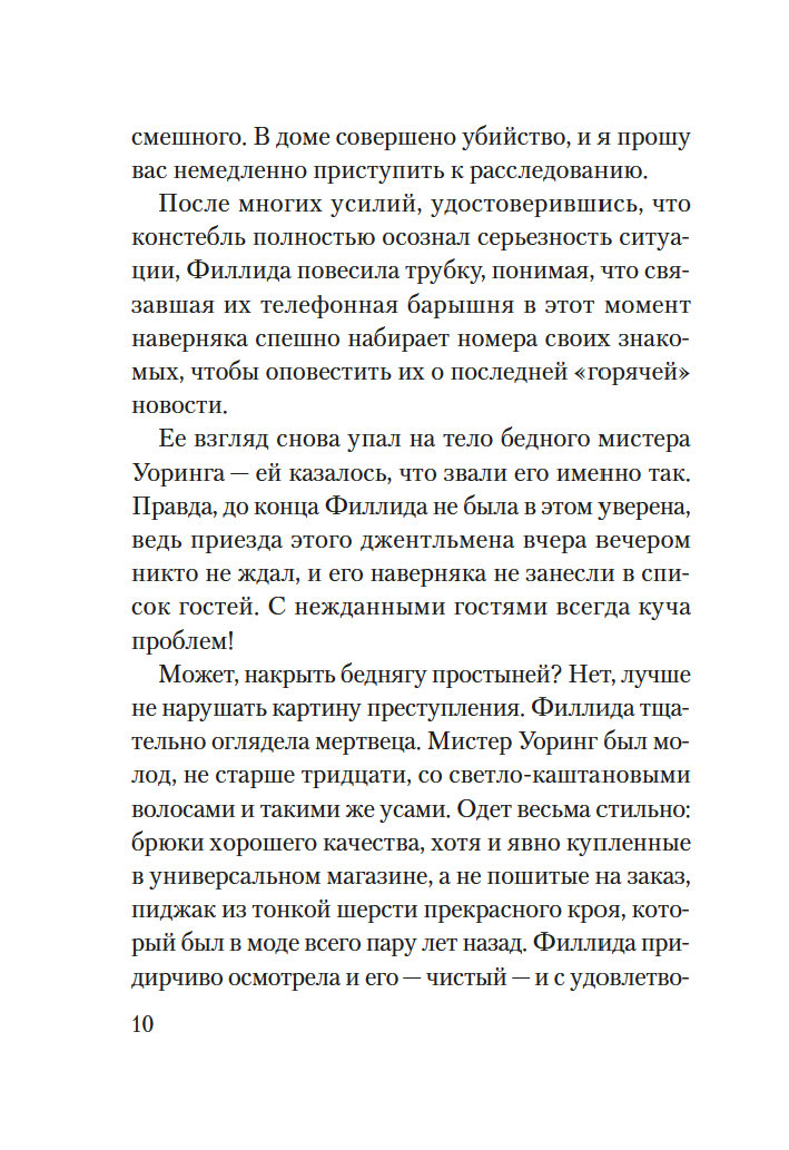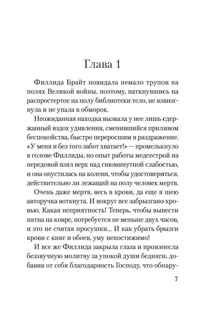 Филлида Брайт управляет хозяйством в поместье, затерянном среди зеленых холмов Девоншира. Но это вовсе не заурядный загородный дом – поместье принадлежит мужу знаменитой Агаты Кристи, давней подруги Филлиды. За ужином хозяева обсуждают с гостями оригинальные способы убийства, но, когда наутро Филлида находит в библиотеке труп, это становится для нее неожиданностью… Экономка пытается помочь полиции, но тщетно, и ей приходится расследовать преступление самостоятельно. А после второго убийства сомнений не остается: убийца – один из гостей!