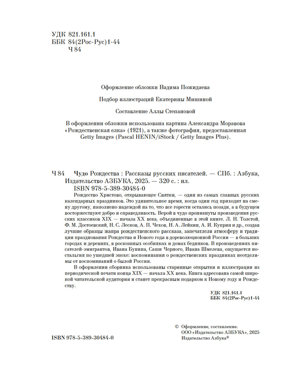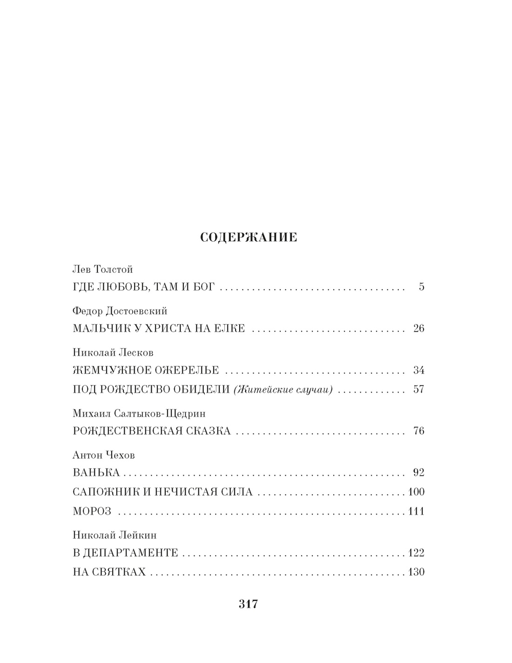 Рождество Христово, открывающее Святки, – один из самых главных русских календарных праздников. Это удивительное время, когда один год приходит на смену другому, наполнено надеждой на то, что все горести остались позади, а в будущем восторжествуют добро и справедливость. Верой в чудо проникнуты произведения русских классиков XIX – начала ХХ века, объединенные в этой книге. Л. Н. Толстой, Ф. М. Достоевский, Н. С. Лесков, А. П. Чехов, Н. А. Лейкин, А. И. Куприн и др., создав лучшие образцы жанра рождественского рассказа, запечатлели атмосферу и традиции празднования Рождества и Нового года в дореволюционной России – в больших городах и деревнях, в роскошных особняках и домах бедняков. В произведениях писателей-эмигрантов, Ивана Бунина, Саши Черного, Ивана Шмелева, ощущается ностальгия по ушедшей эпохе: воспоминания о рождественских праздниках неотделимы от воспоминаний о былой России.