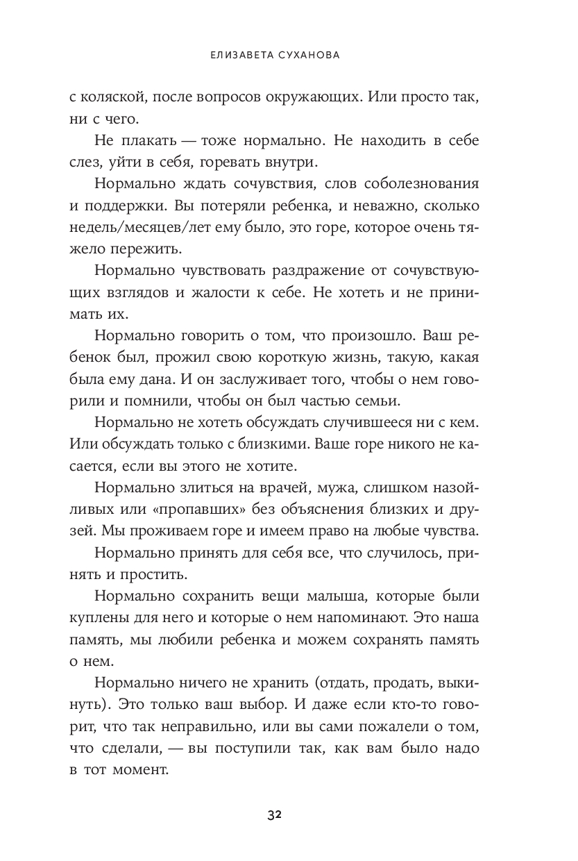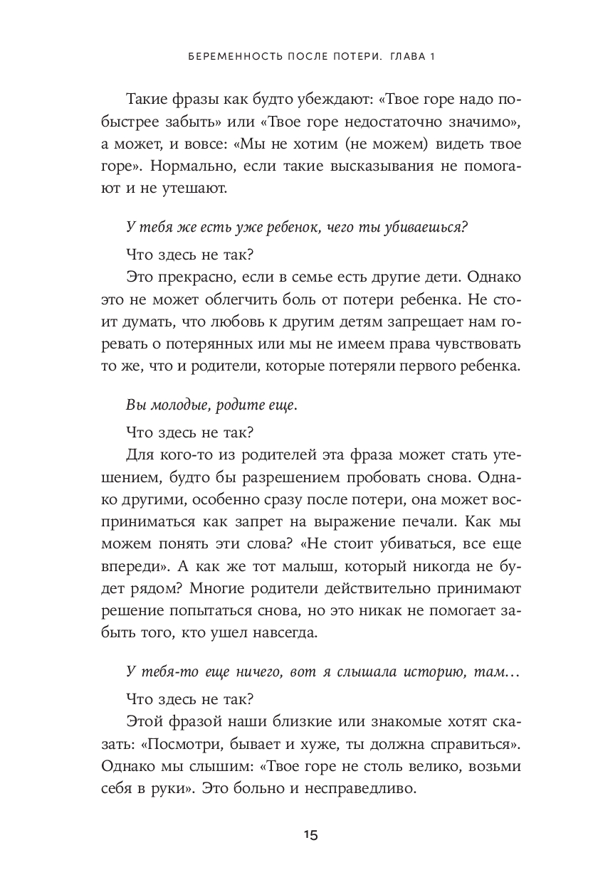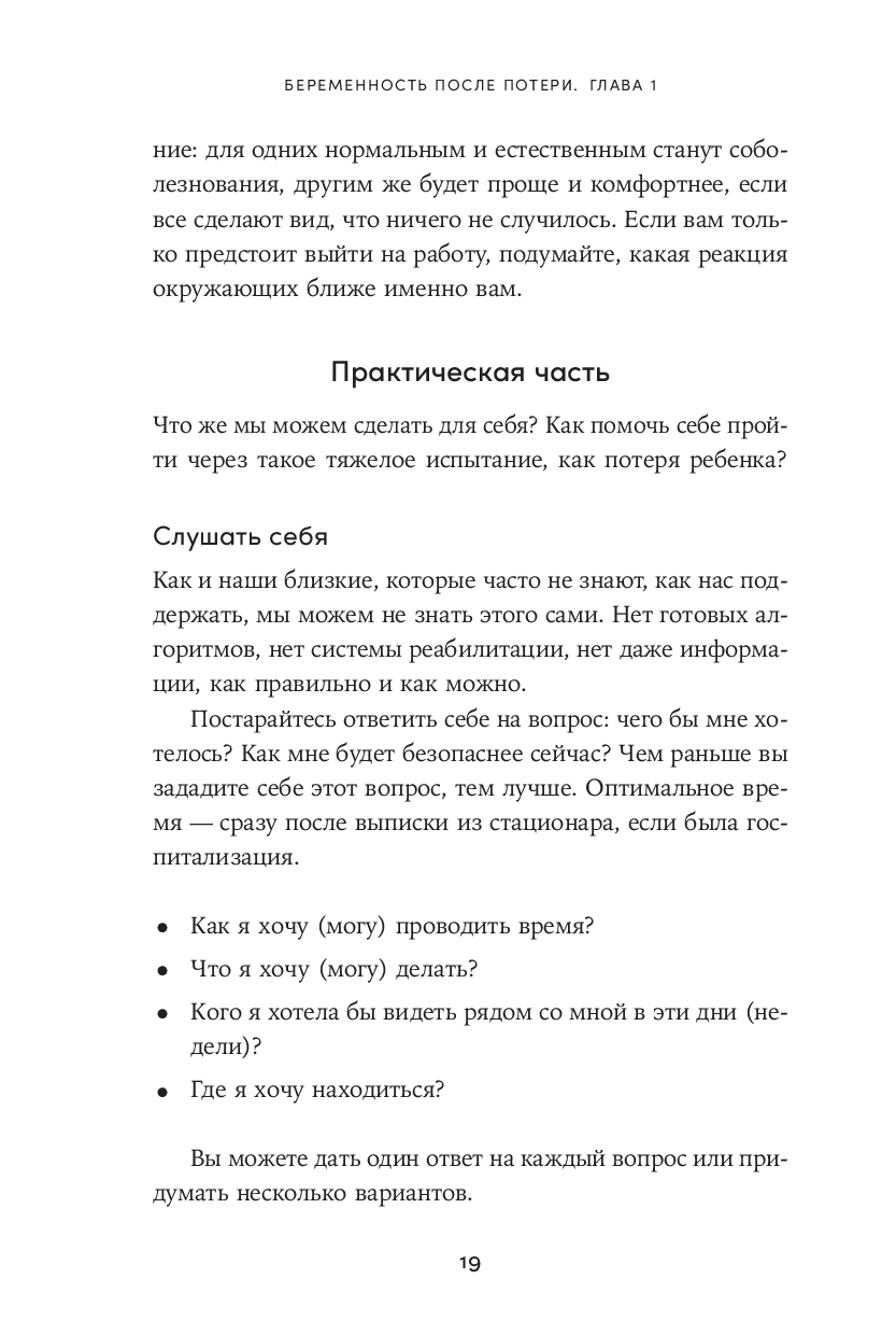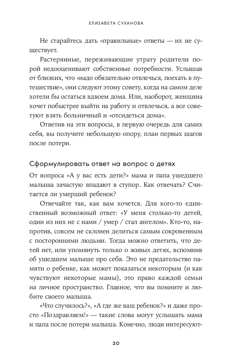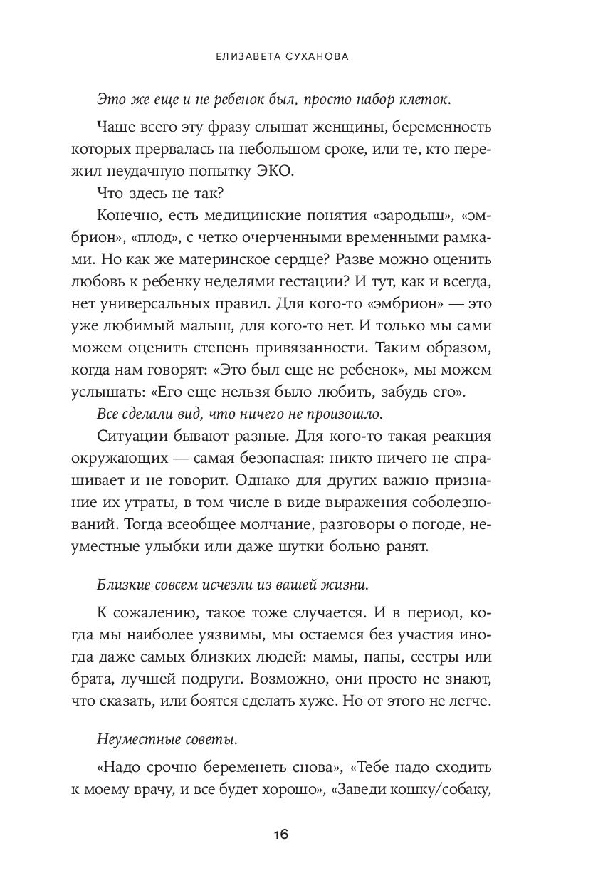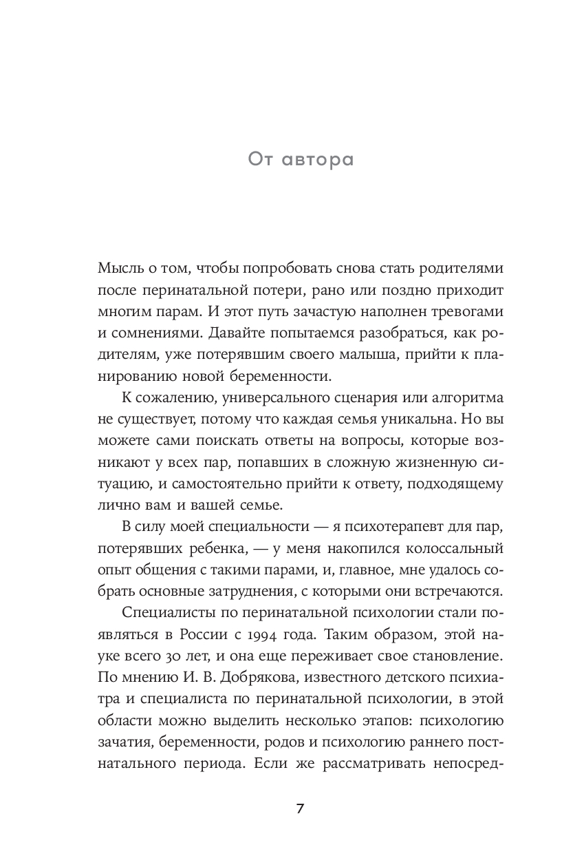 Мысль о том, чтобы попробовать снова стать родителями после потери ребенка, рано или поздно приходит ко многим парам. Книга перинатального психотерапевта Елизаветы Сухановой поможет разобраться, как семье, на любом сроке потерявшей своего малыша, прийти к планированию новой беременности. Вы узнаете, как быть с чувством вины, болью, тревогой и страхом, что отвечать на неудобные вопросы и где найти силы и спокойствие. Здесь собран колоссальный авторский опыт общения с парами и основные затруднения, с которыми можно столкнуться. В каждой главе есть практическая часть для самостоятельной работы: полезные упражнения и техники из разных направлений психологии.