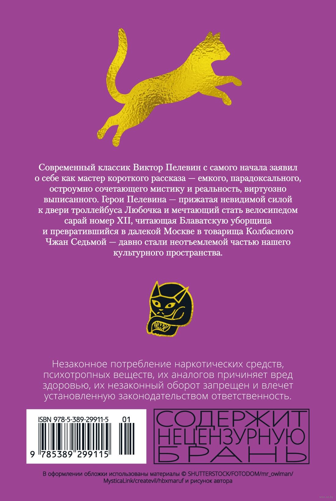 Современный классик Виктор Пелевин с самого начала заявил о себе как мастер короткого рассказа – емкого, парадоксального, остроумно сочетающего мистику и реальность, виртуозно выписанного. Герои Пелевина – прижатая невидимой силой к двери троллейбуса Любочка и мечтающий стать велосипедом сарай номер XII, читающая Блаватскую уборщица и превратившийся в далекой Москве в товарища Колбасного Чжан Седьмой – давно стали неотъемлемой частью нашего культурного пространства.