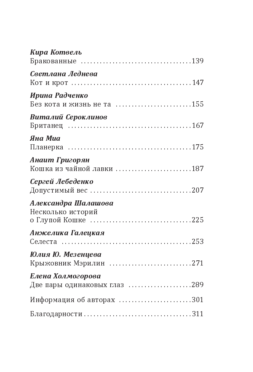 Однако эта книга – больше чем литературно-благотворительный проект. Это двадцать добрых рассказов современных российских авторов о котах и кошках: от психологической прозы до магического реализма, от счастливых историй с добрым концом до трогательных воспоминаний о любимых питомцах. В каждом рассказе вы найдете множество причин, по которым коты и кошки делают нашу жизнь лучше.