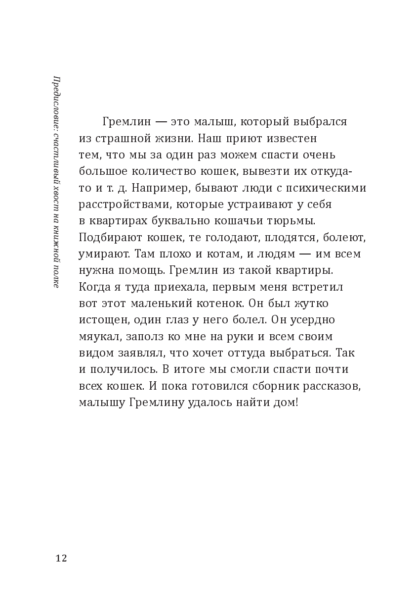 Этот сборник – замечательный подарок любителям кошек и уютного чтения. А для котиков из приюта "Счастливый хвост" каждая купленная книга – шаг к миске с едой, теплому дому и к своему человеку.