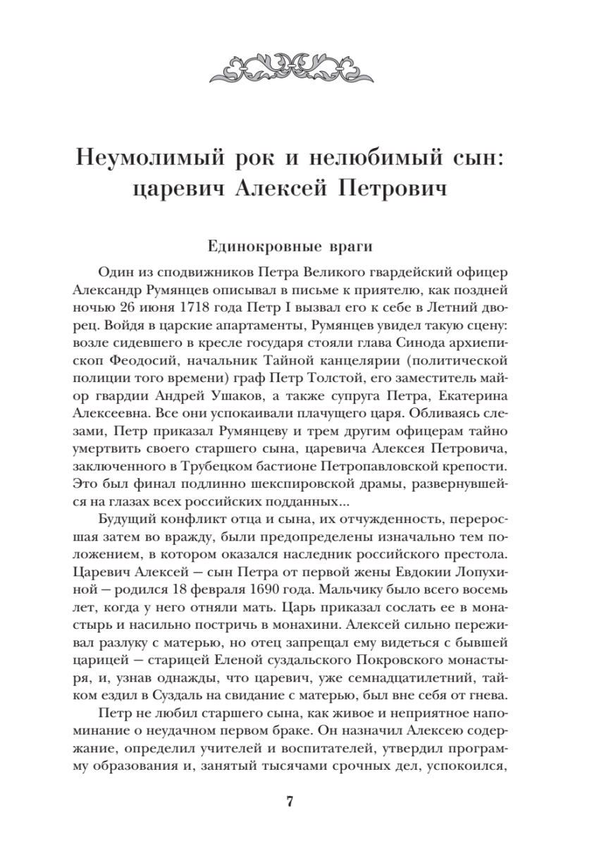 Перед вами пройдет череда увлекательнейших сюжетов из жизни царей и российской знати. Вы найдете ответы на вопросы: в чем заключалась истинная причина казни царевича Алексея? Был ли Михаил Ломоносов сыном Петра Великого? Кто скрывался под русской "Железной маской"? Кто был тайным мужем императрицы Елизаветы? Как сложилась жизнь внебрачного сына императрицы Екатерины Великой? И наконец – какова была тайна всех тайн русского двора, о которой знали все?