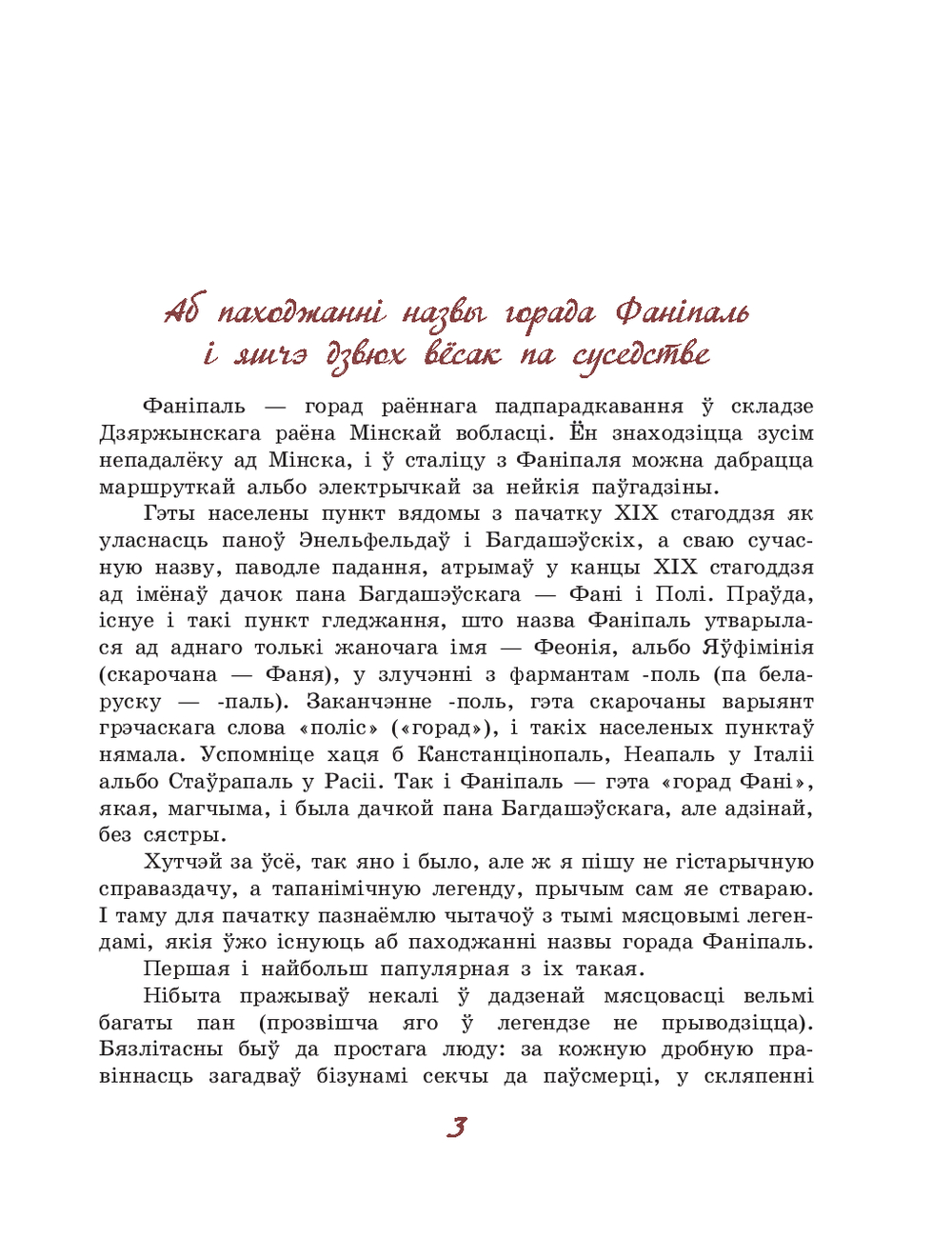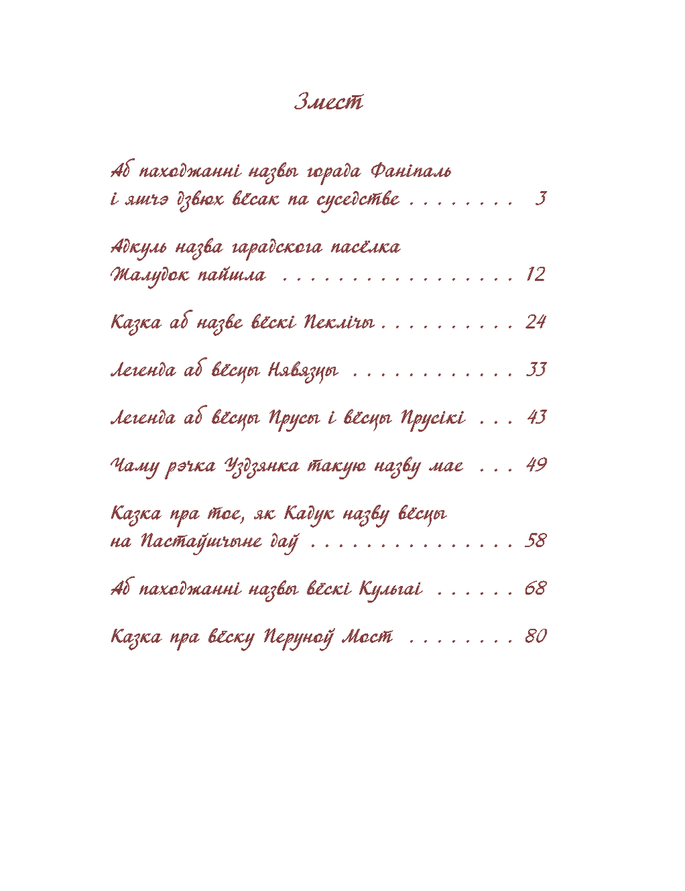 У іх аўтар, зыходзячы са сваёй уласнай фантазіі, спрабуе адказаць на пытанне, якім чынам той ці іншы населены пункт ці геаграфічны аб’ект нашай краіны атрымаў сваю назву. Мэта выдання – разбудзіць цікавасць чытачоў да гістарычнай спадчыны роднага краю.