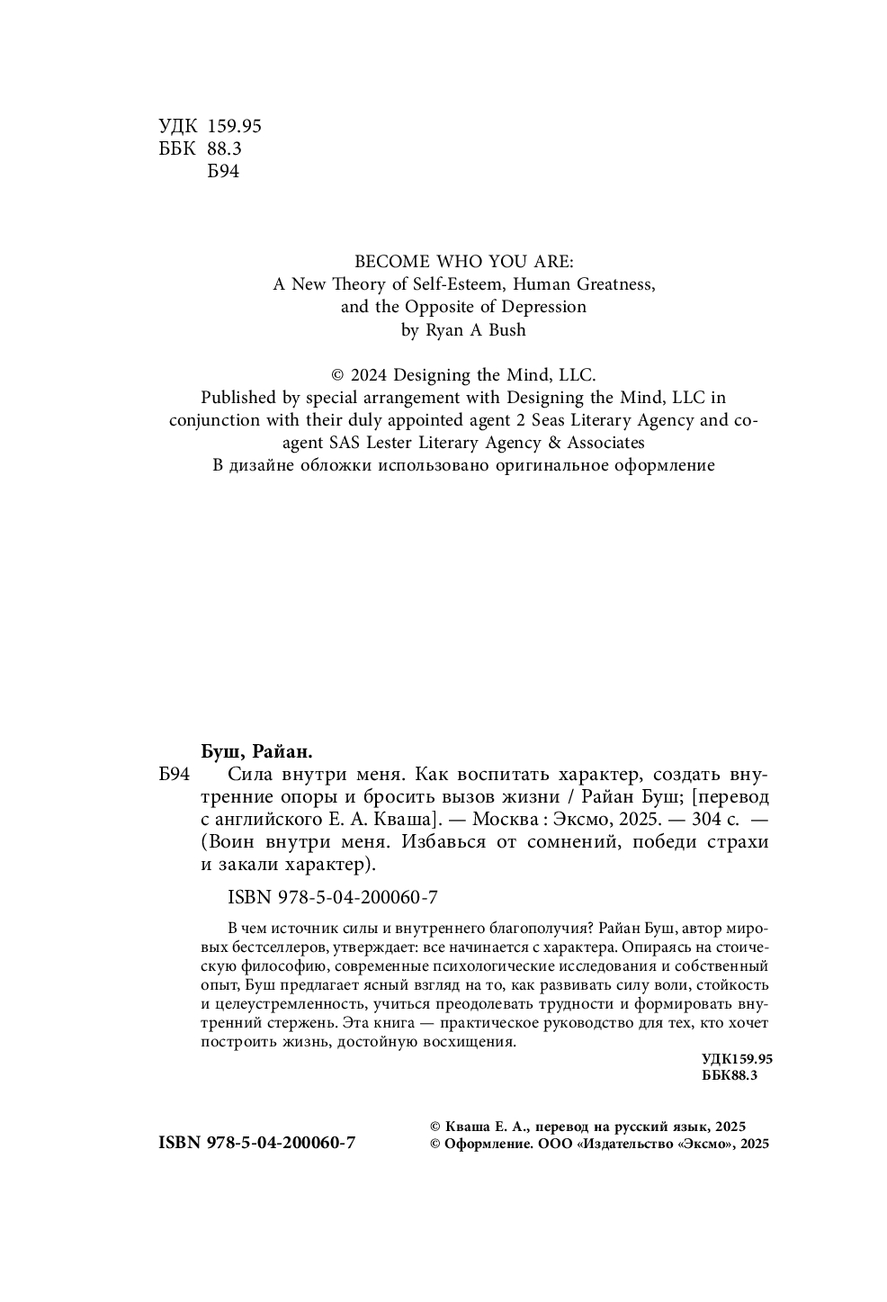 Здесь сконцентрирована практическая философия силы. Буш объединяет идеи стоиков, открытия нейропсихологии и свой личный опыт, чтобы ответить на главный вопрос: как воспитать характер и стать человеком, которого уважаешь прежде всего сам.
