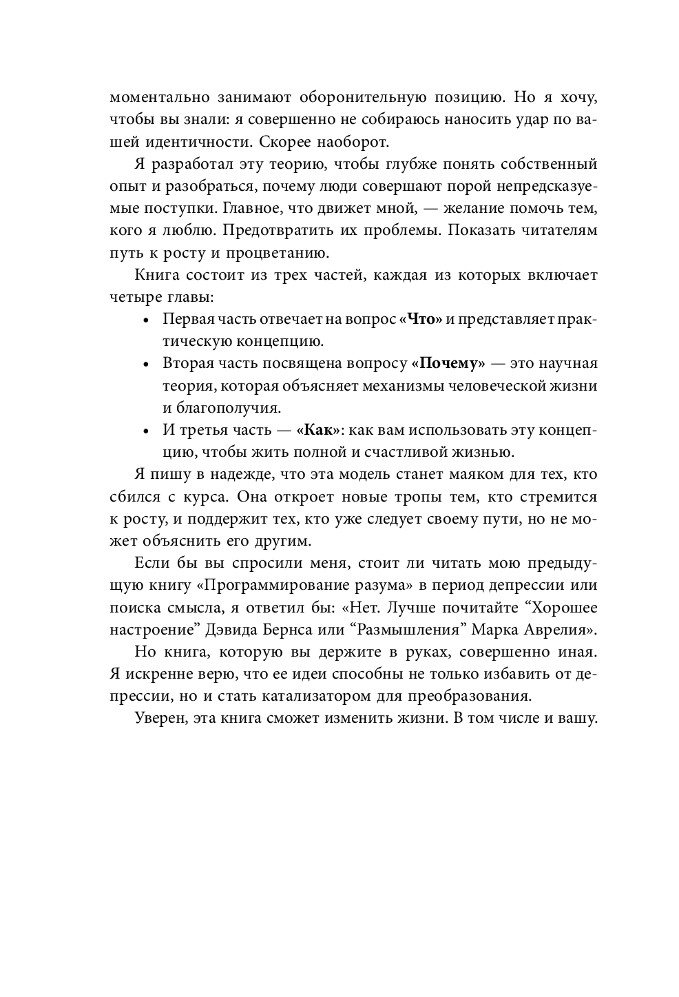 Райан Буш, автор международного бестселлера "Программирование разума", доказывает: настоящее благополучие рождается не из удовольствий и случайных успехов, а из дисциплины и поступков, достойных восхищения.