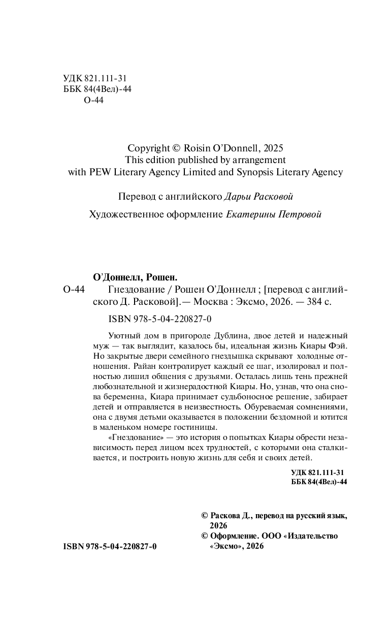 Уютный дом в пригороде Дублина, двое детей и надежный муж – так выглядит, казалось бы, идеальная жизнь Киары Фэй. Но закрытые двери семейного гнездышка скрывают холодные отношения. Райан контролирует каждый ее шаг, изолировал и полностью лишил общения с друзьями. Осталась лишь тень прежней любознательной и жизнерадостной Киары. Но узнав, что она снова беременна, Киара принимает судьбоносное решение, забирает детей и отправляется в неизвестность. Обуреваемая сомнениями, она с двумя детьми оказывается в положении бездомной и ютится в маленьком номере гостиницы.