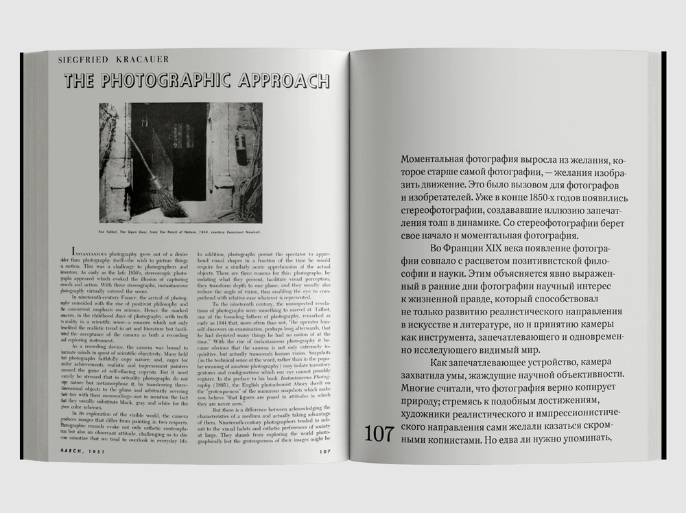 Сборник объединяет критические замечания, философские размышления, а также реальный опыт в области фотографии одного из ведущих интеллектуалов Веймарской республики – Зигфрида Кракауэра. Эссе, написанные в 1927–1933 и 1951 годах, помещают фотографию в контекст массовой культуры, городской жизни, мира кино, а также вопросов памяти и истории. Завершается сборник серией фотографий Кракауэра для гипотетического проекта "Curriculum Vitae в фотографиях" с комментарием Марии Цинферт. Всем этим текстам предшествует статья профессора Монреальского университета, литературоведа и историка идей Филиппа Депуа "Кракауэр – теоретик фотографического медиума".