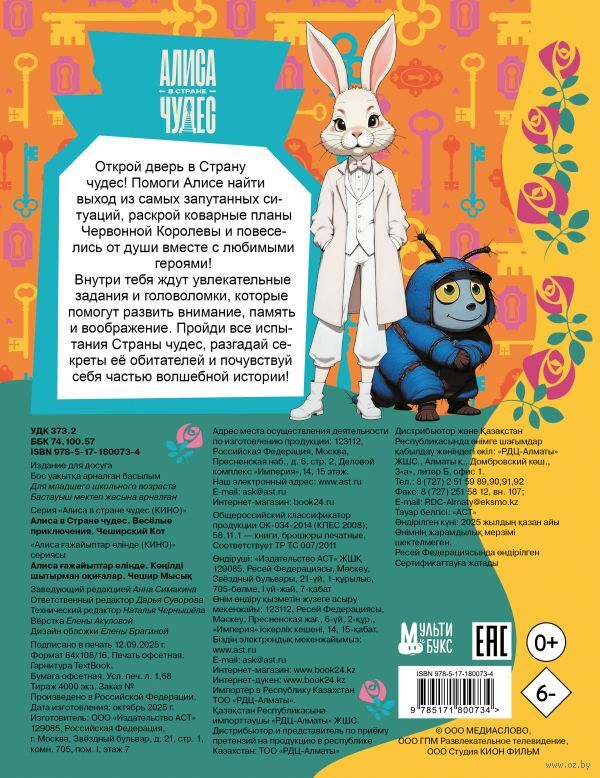Внутри тебя ждут увлекательные задания и головоломки, которые помогут развить внимание, память и воображение. Пройди все испытания Страны чудес, разгадай секреты её обитателей и почувствуй себя частью волшебной истории!
