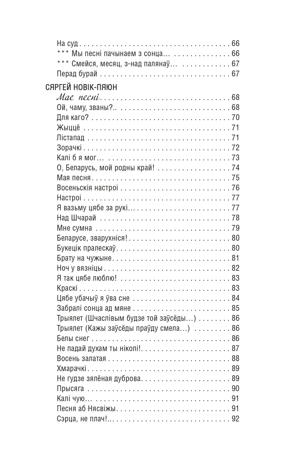 У зборніку змешчаны лепшыя вершы трох вядомых беларускіх паэтаў, якія ўвайшлі ў залаты фонд айчыннай літаратуры, – Валянціна Таўлая, Сяргея Новіка-Пеюна і Міхася Васілька.