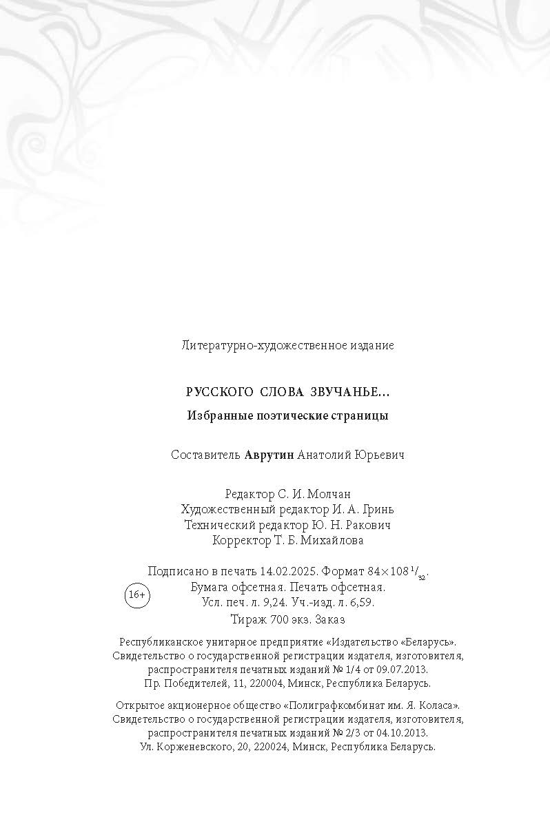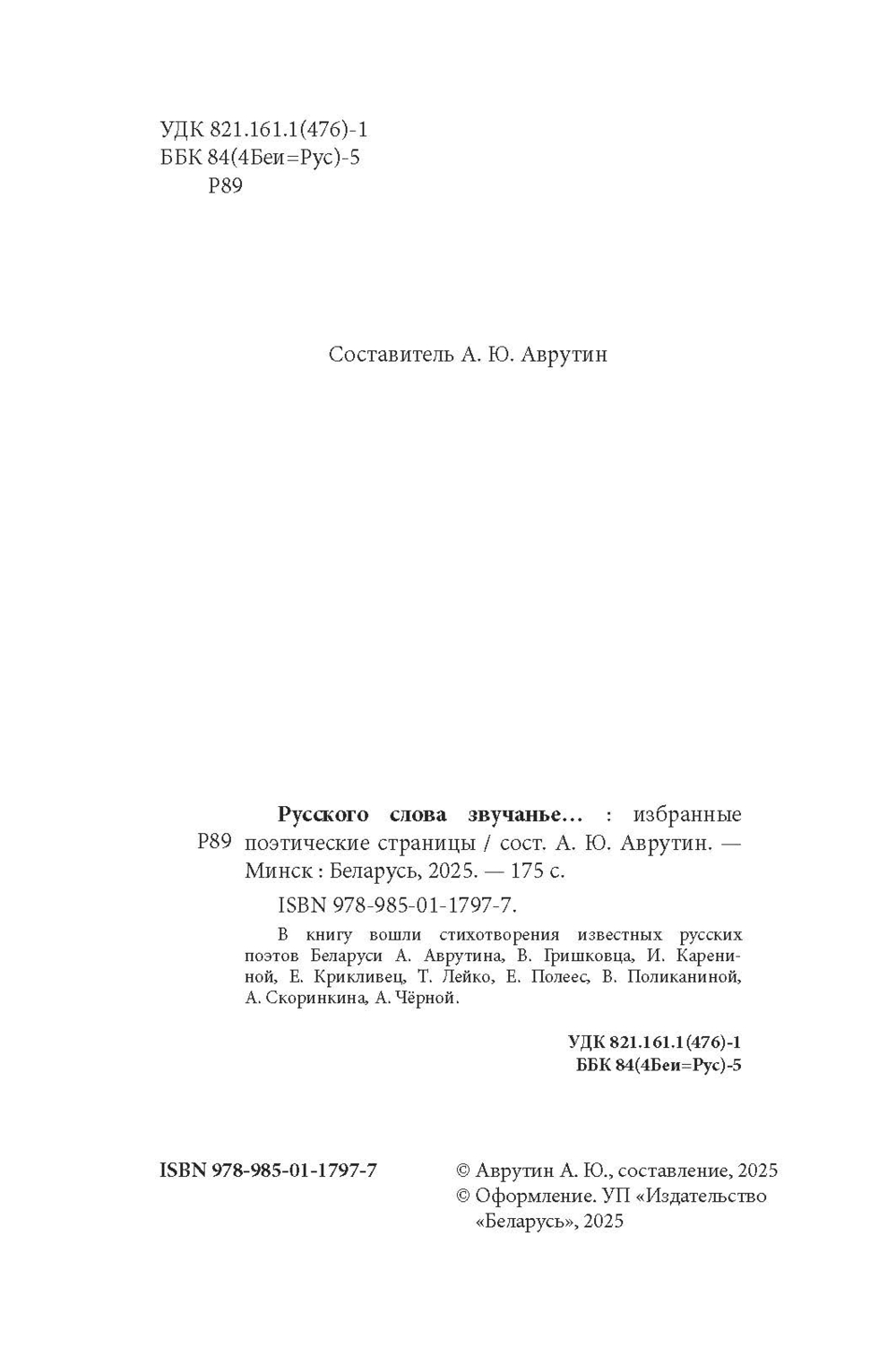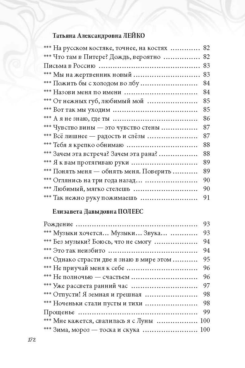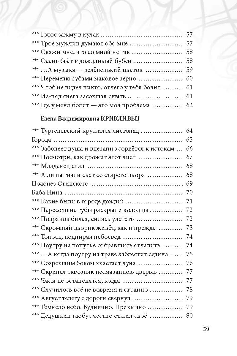В книгу вошли стихотворения известных русских поэтов Беларуси А. Аврутина, В. Гришковца, И. Карениной, Е. Крикливец, Т. Лейко, Е. Полеес, В. Поликаниной, А. Скоринкина, А. Чёрной.