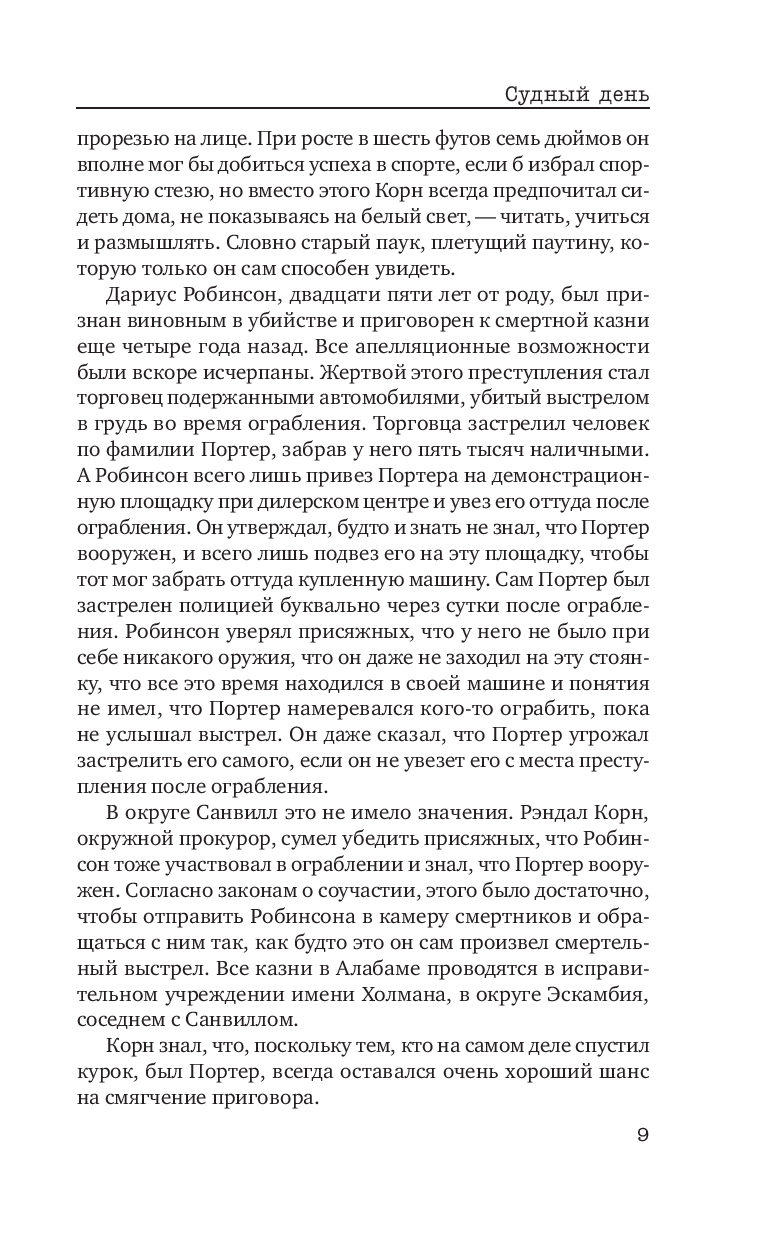 Молодому парню Энди Дюбуа грозит смертная казнь за убийство девушки, всеобщей любимицы жителей алабамского городка Бакстаун. Улики против него железобетонные, а Корн уже сделал все, чтобы обеспечить в суде быстрый приговор – и электрический стул для несчастного.