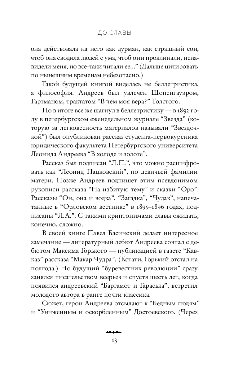 Леонид Андреев (1871-1919) известен как автор "Баргамота и Гараськи", "Иуды Искариота", "Красного смеха", "Жизни Василия Фивейского" и еще десятка повестей, рассказов и пьес. Но это лишь вершина айсберга, малая часть его литературного наследия. В томе, составленном Романом Сенчиным, собраны ранние, малоизвестные рассказы Андреева, которые он сам не включал в переиздания, но бережно хранил в своем архиве.