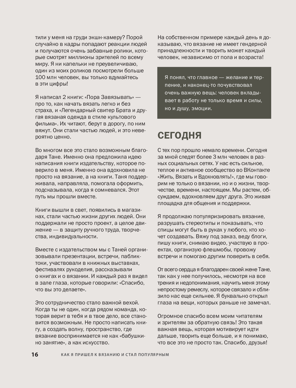 Эта книга – уникальное сочетание практики и личного опыта автора, который доказал: вязание может быть актуальным, стильным, доступным каждому и дарящим радость.