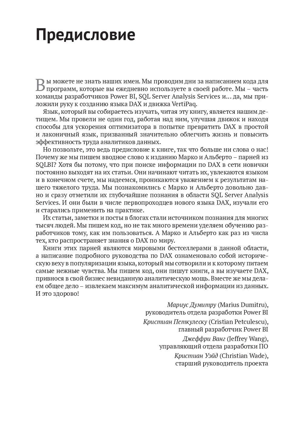Издание предназначено для опытных пользователей и профессионалов в сфере бизнес-аналитики, использующих в своей работе DAX и аналитические инструменты от Microsoft.