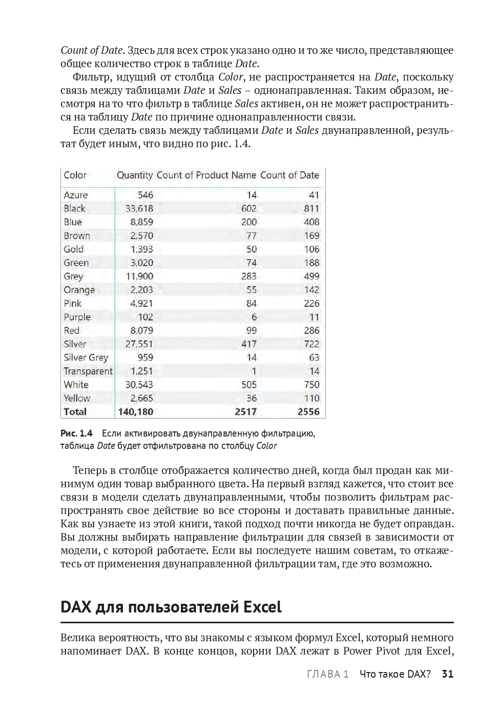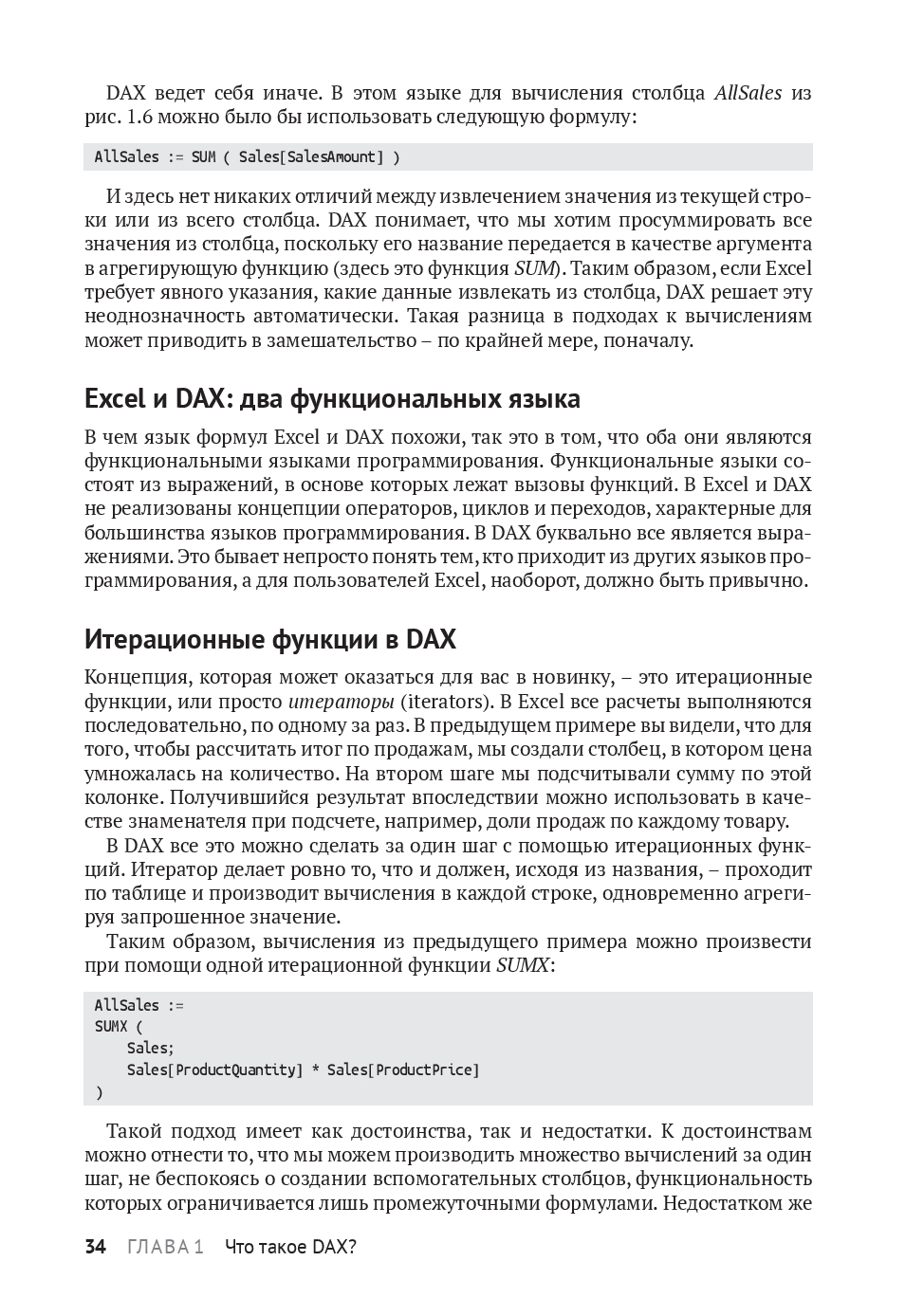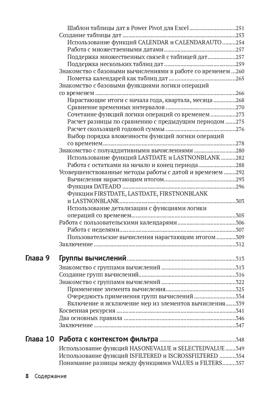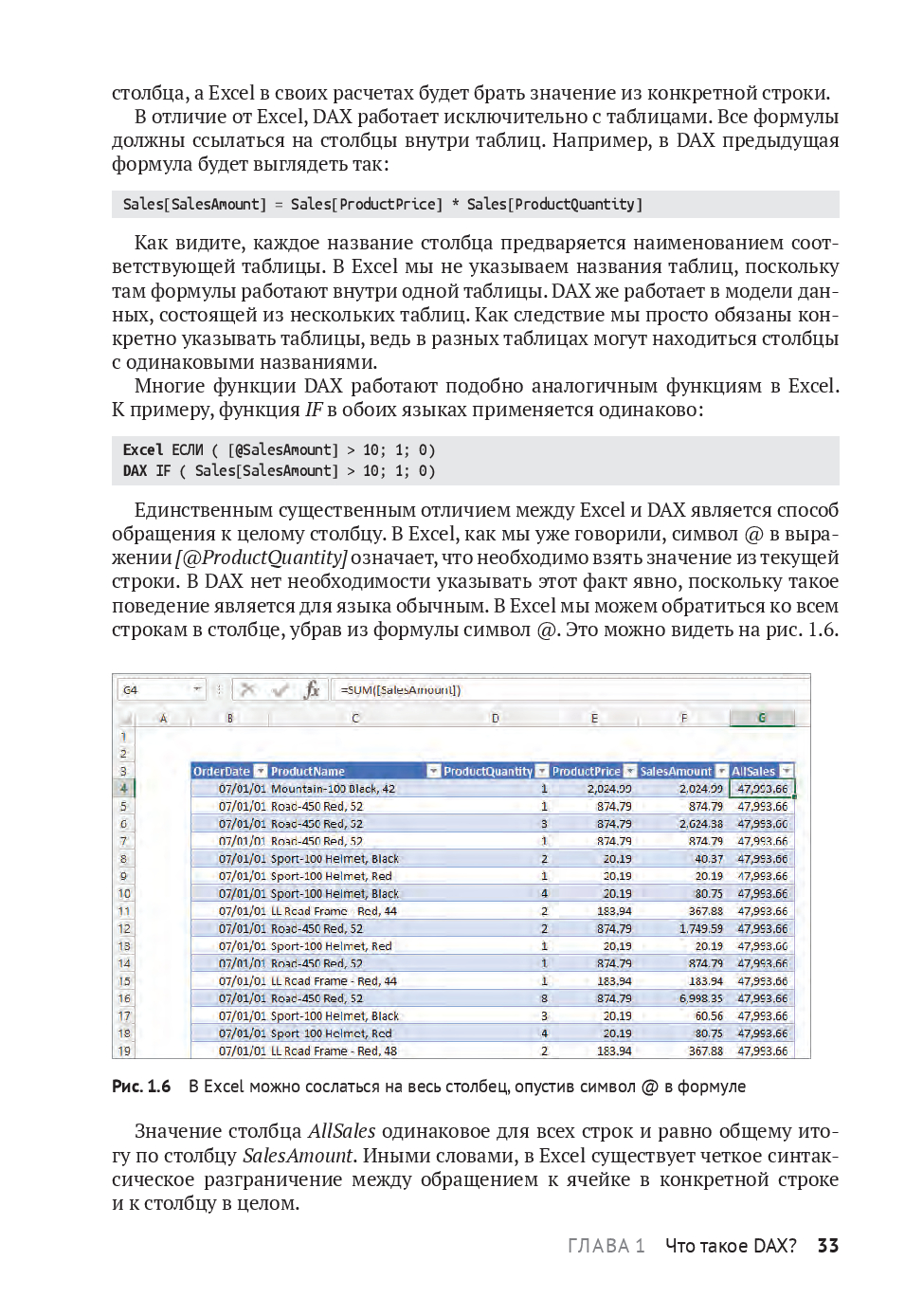 Расширенная и дополненная с учетом современных требований и техник, эта книга представляет собой наиболее полное руководство по языку DAX, применяемому в области бизнес-аналитики, моделирования данных и анализа. Эксперты Microsoft BI Марко Руссо и Альберто Феррари излагают как основы, так и отдельные нюансы работы с DAX: от простых табличных функций до продвинутых техник программирования и оптимизации моделей. Вы узнаете, что происходит под капотом движка DAX при запуске выражений; полученные знания пригодятся при написании быстрого и надежного кода.