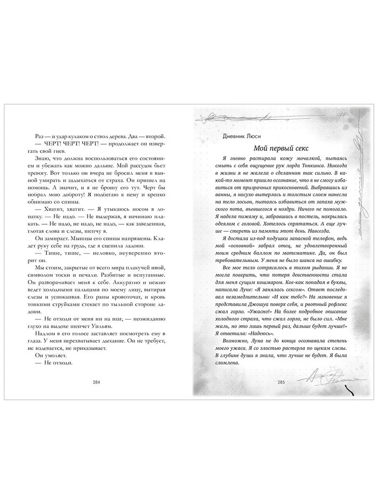 Чувственный роман о любви "Уроки нежности" украшен яркими иллюстрациями Анны Полозовой с любимыми сценами из романа. Цветной обрез, иллюстрированные форзац и нахзац, стильные черно-белые иллюстрации в тексте – невероятный дизайн книги превращает ее в идеальный подарок поклонникам темной романтики. Также в подарочном издании есть четыре бонусных фрагмента и рождественский бонус от лица Уильяма.