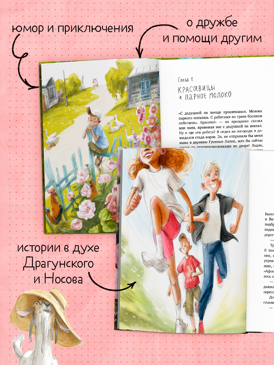 Добро пожаловать в деревню Гусиные Лапки! В этом сборнике вас ждут три веселые и добрые истории о приключениях Афони, Витьки и Светки. Вы узнаете, как они подружились, как убегали от козла Тихона, как побывали на настоящей деревенской свадьбе, что нужно сделать, чтобы найти родник с живой водой, и почему каникулы в деревне останутся ярким воспоминанием на всю жизнь!