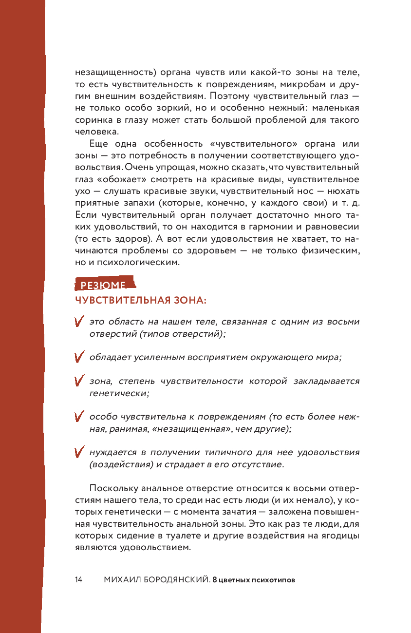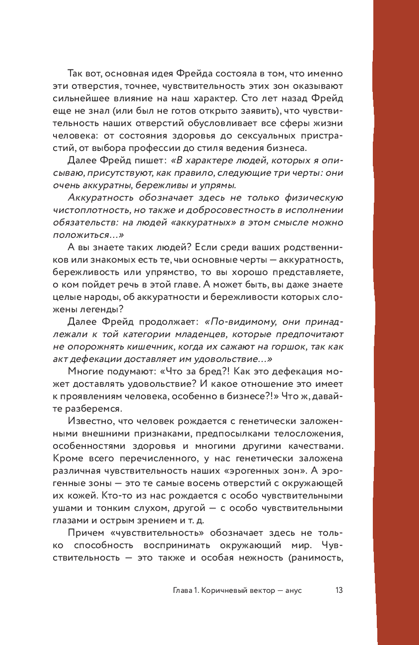 Михаил Бородянский – врач-психотерапевт, консультант и бизнес-тренер, автор множества публикаций об искусстве управления и коммуникации, отец четверых детей. С 1994 года провел более 800 тренингов в России, Европе и США, на которых обучились свыше 26 000 человек. В начале прошлого века Зигмунд Фрейд предположил, что характер человека каким-то образом связан с чувствительными отверстиями на нашем теле (рот, нос, ухо, глаз и другие). Сто лет назад Фрейд еще не знал или был не готов открыто заявить, что чувствительность этих отверстий обусловливает все сферы жизни человека: от состояния здоровья до сексуальных пристрастий, от выбора профессии до стиля ведения бизнеса.
