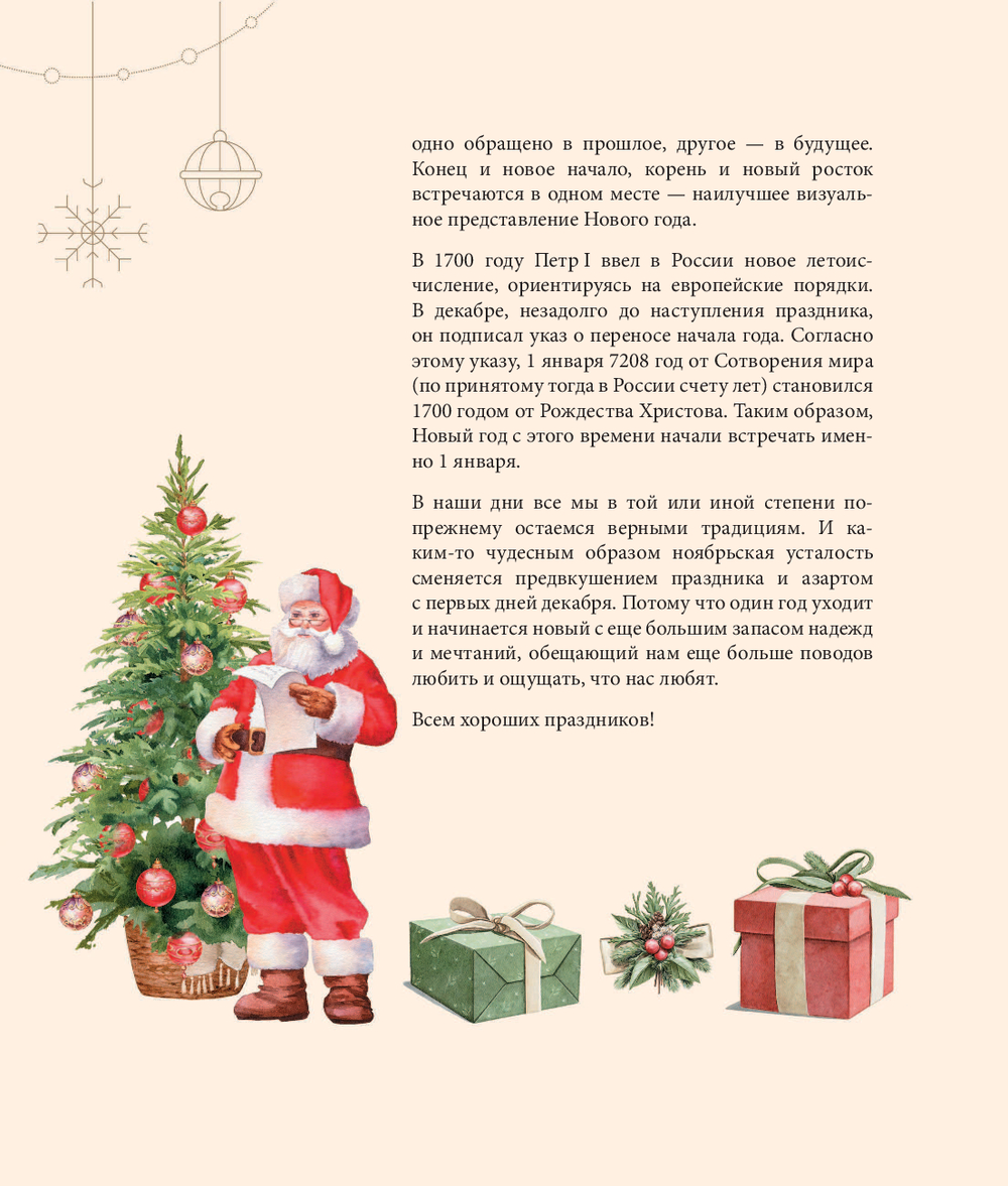 Эта книга – настоящий путеводитель в мир новогодней магии. Винтажное оформление, чудесные рисунки и яркие фотографии увлекут за собой в атмосферу праздника, а увлекательные истории приоткроют дверь в тайну Нового года. Это прекрасный подарок, который объединит всю семью.