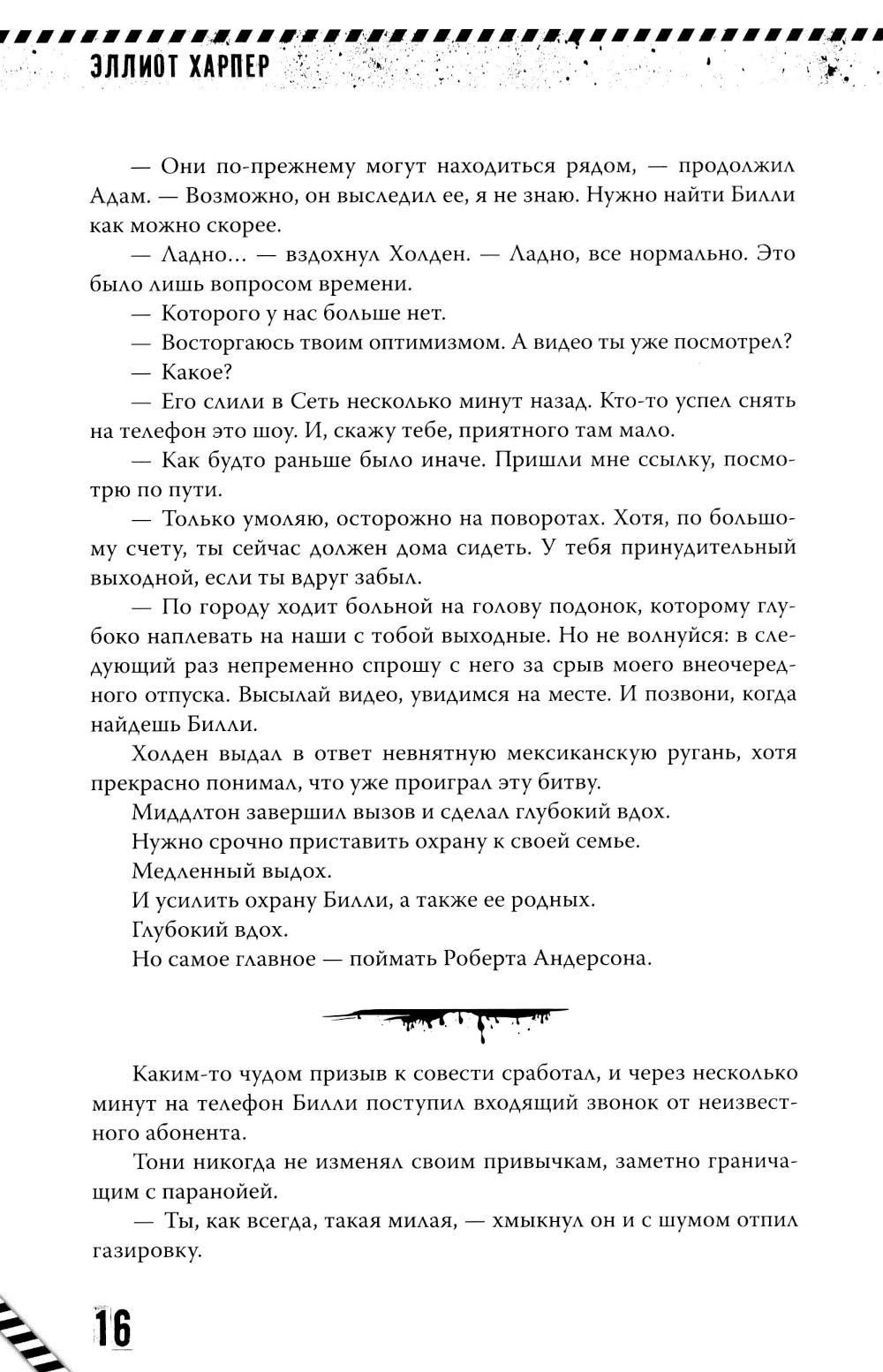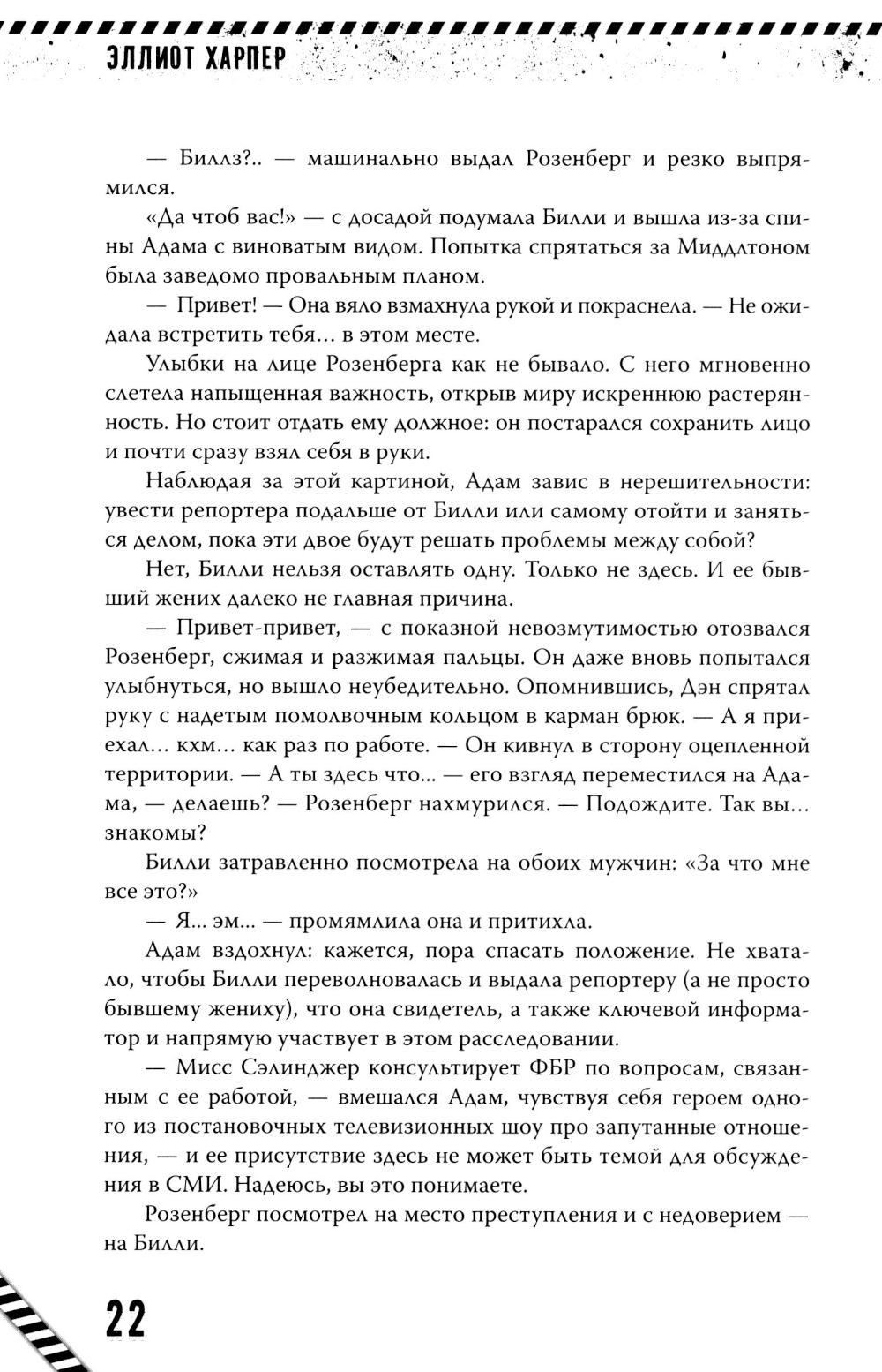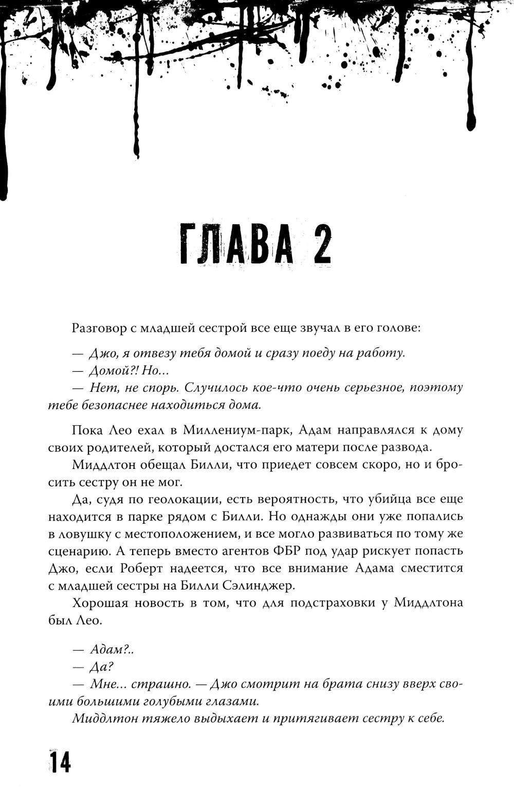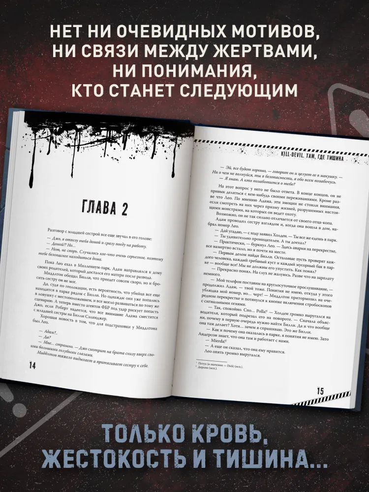 Билли Сэлинджер и Адам Миддлтон понимают: он не остановится. Его аппетиты растут, он хладнокровен, расчетлив и всегда на шаг впереди. Нет ни очевидных мотивов, ни связи между жертвами, ни понимания, кто станет следующим, – только кровь, жестокость и тишина... тишина, в которой таится новая атака.
