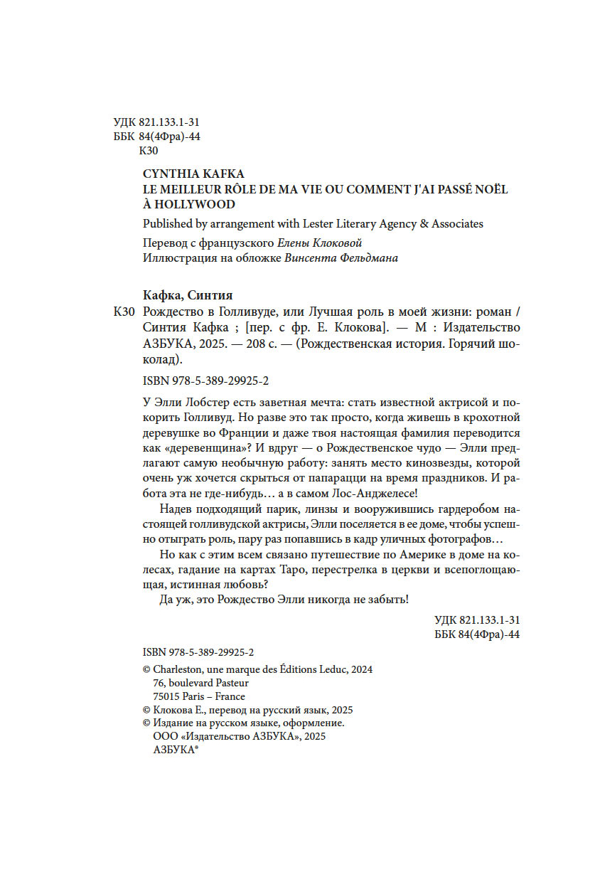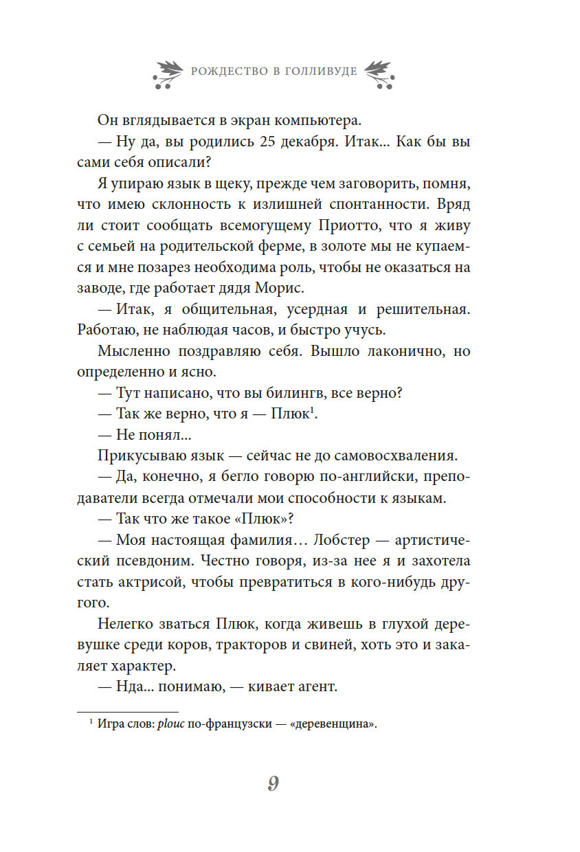 У Элли Лобстер есть заветная мечта: стать известной актрисой и покорить Голливуд. Но разве это так просто, когда живешь в крохотной деревушке во Франции и даже твоя настоящая фамилия переводится как "деревенщина"? И вдруг – о Рождественское чудо – Элли предлагают самую необычную работу: занять место кинозвезды, которой очень уж хочется скрыться на время праздников от папарацци. И не где-нибудь… а в самом Лос-Анджелесе!