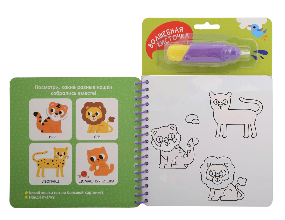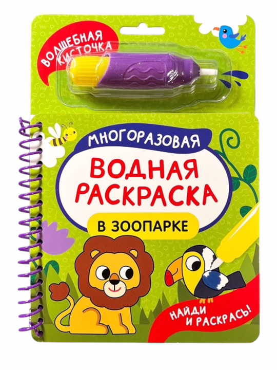 Вашему вниманию предлагается многоразовая водная раскраска с кисточкой "Найди и раскрась. В зоопарке".