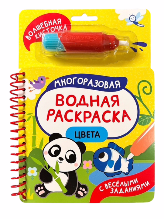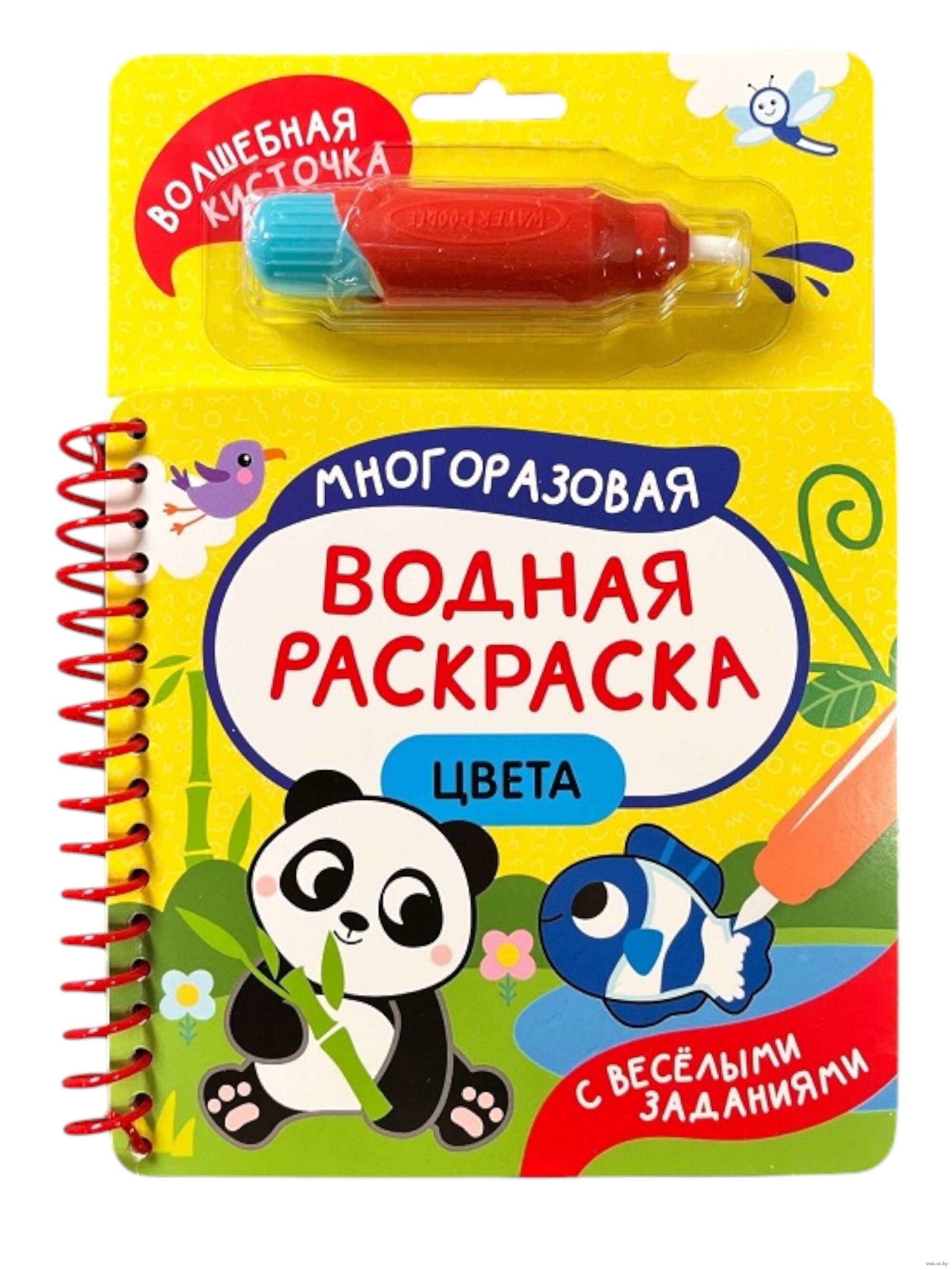Вашему вниманию предлагается многоразовая водная раскраска с кисточкой и весёлыми заданиями "Цвета".