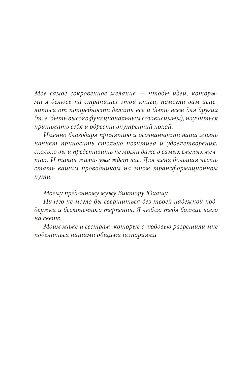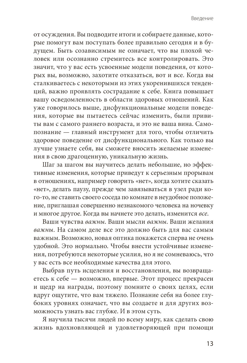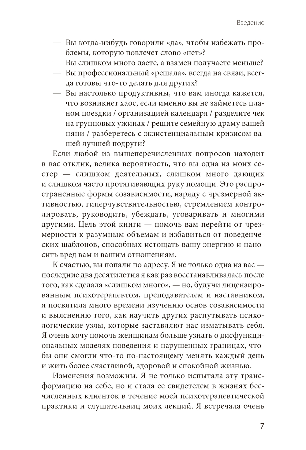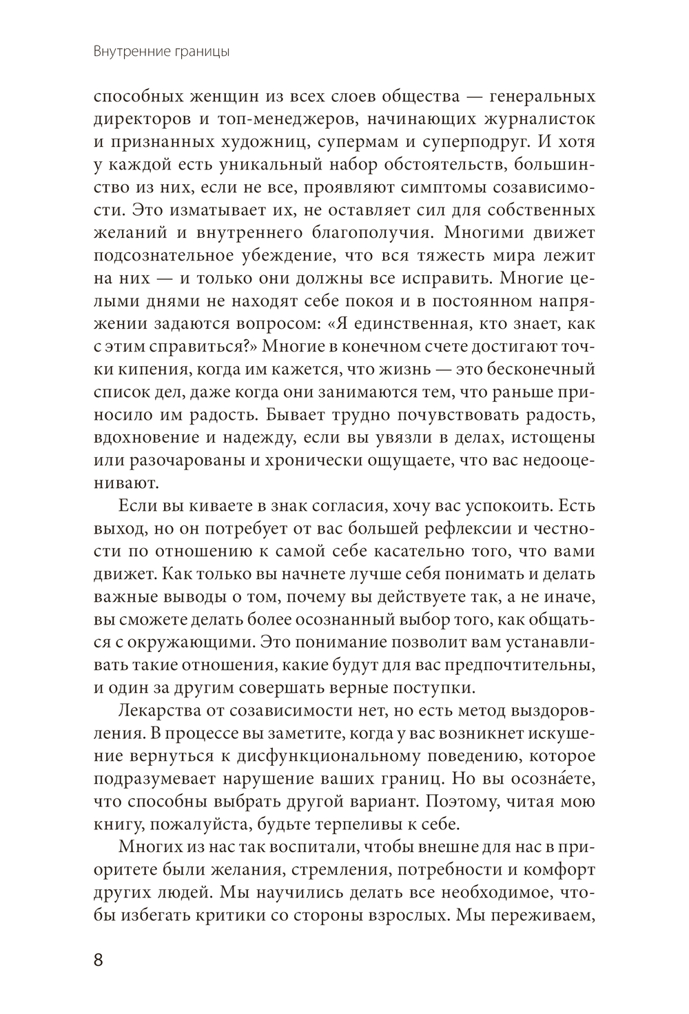 Книга сочетает бережный тон и четкую структуру: в каждой главе – аффирмации, упражнения, тесты, напоминания и задания для самоанализа. Все для того, чтобы пройти полноценный путь исцеления и начать делать не "слишком много", а "именно то, что надо".
