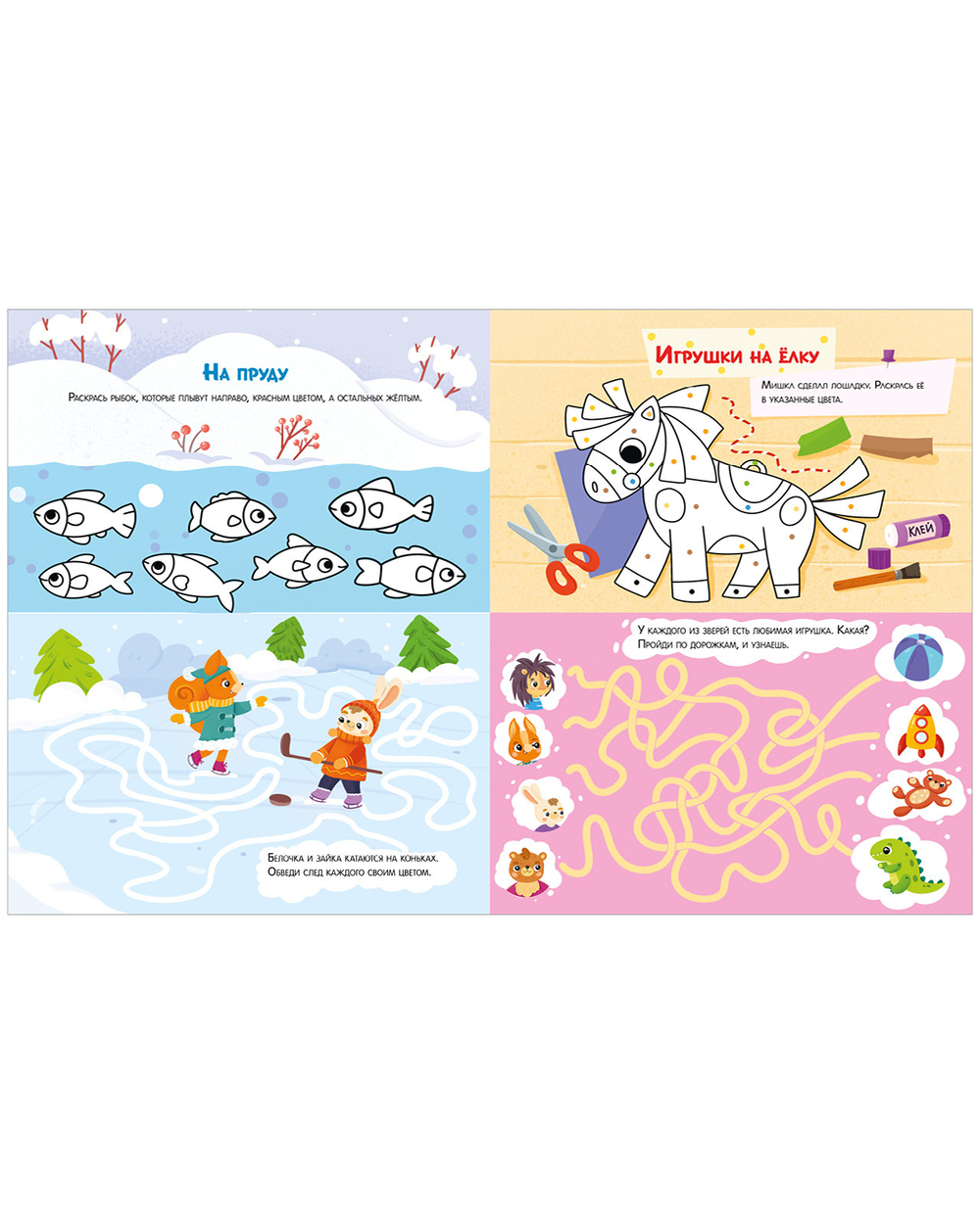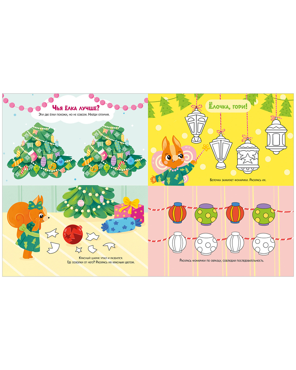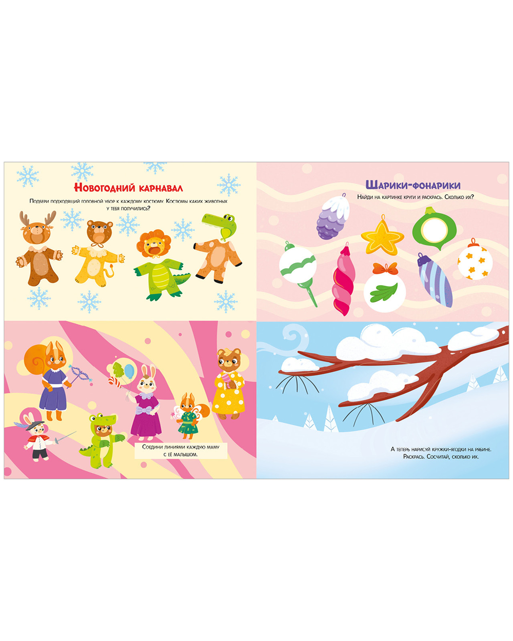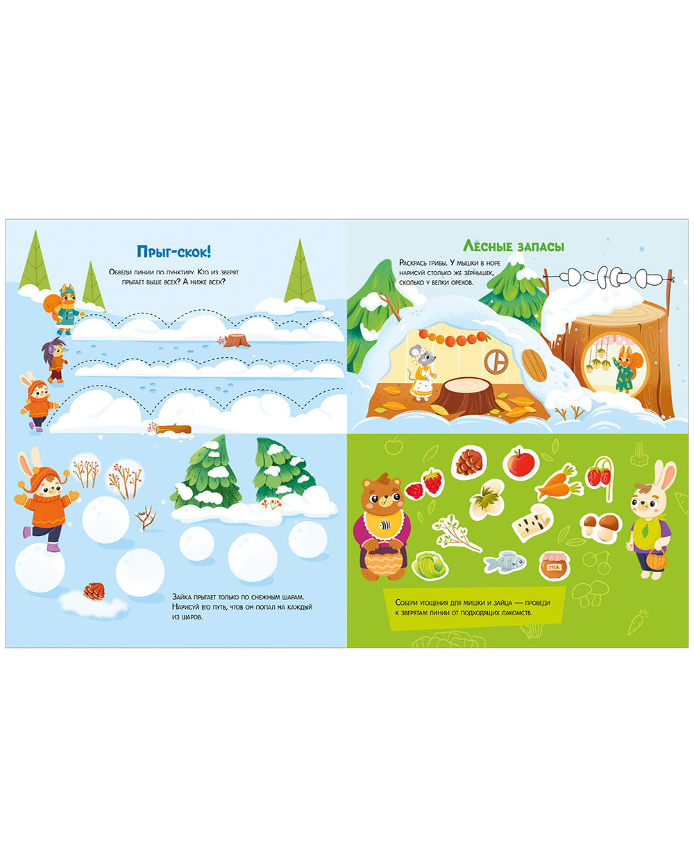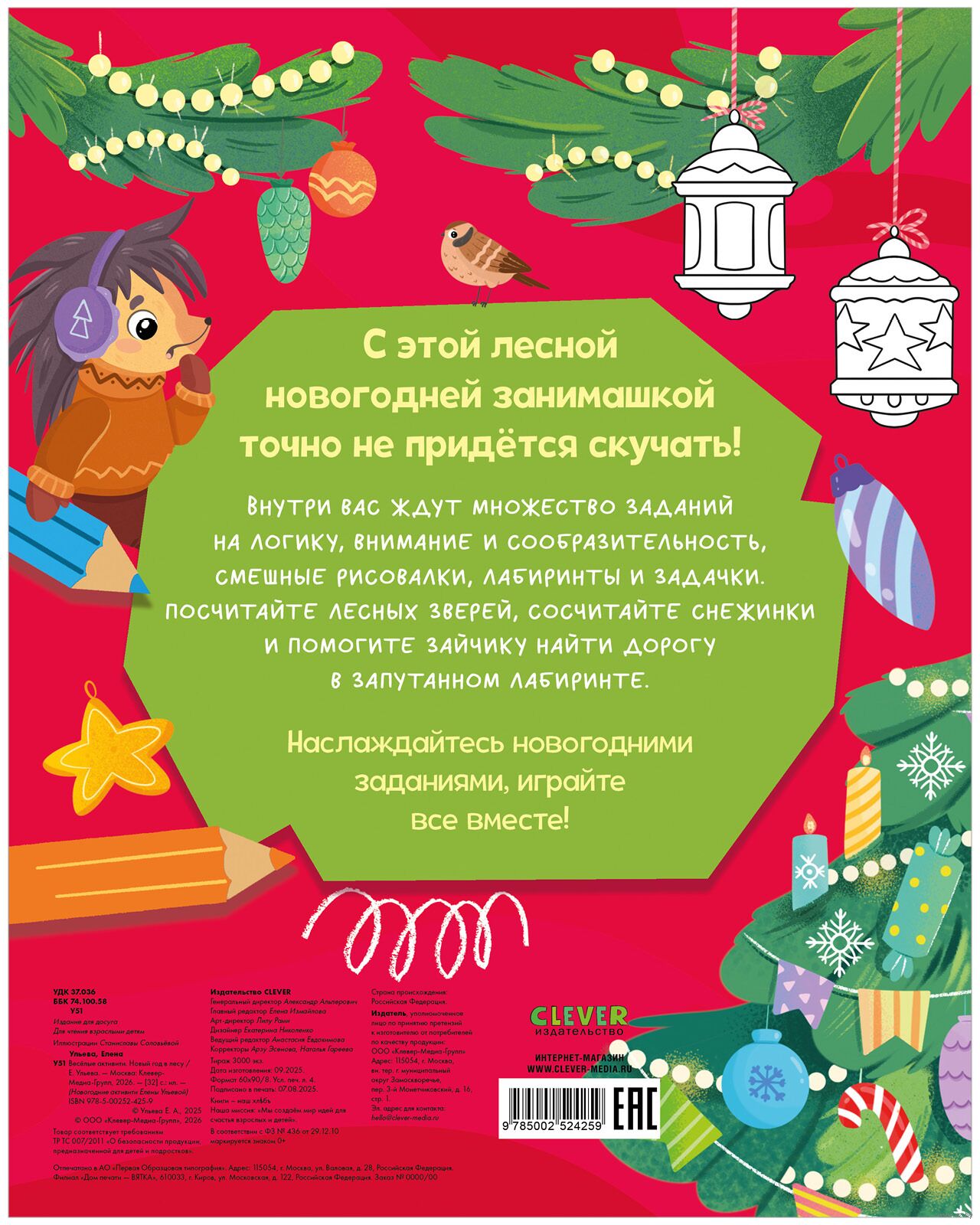 С этой лесной новогодней занимашкой точно не придется скучать! Внутри вас ждут множество заданий на логику, внимание и сообразительность, смешные рисовалки, лабиринты и задачки, а еще – письмо Деду Морозу. Посчитайте лесных зверей, сосчитайте снежинки и помогите зайчику найти дорогу в запутанном лабиринте. Наслаждайтесь новогодними заданиями, играйте все вместе!