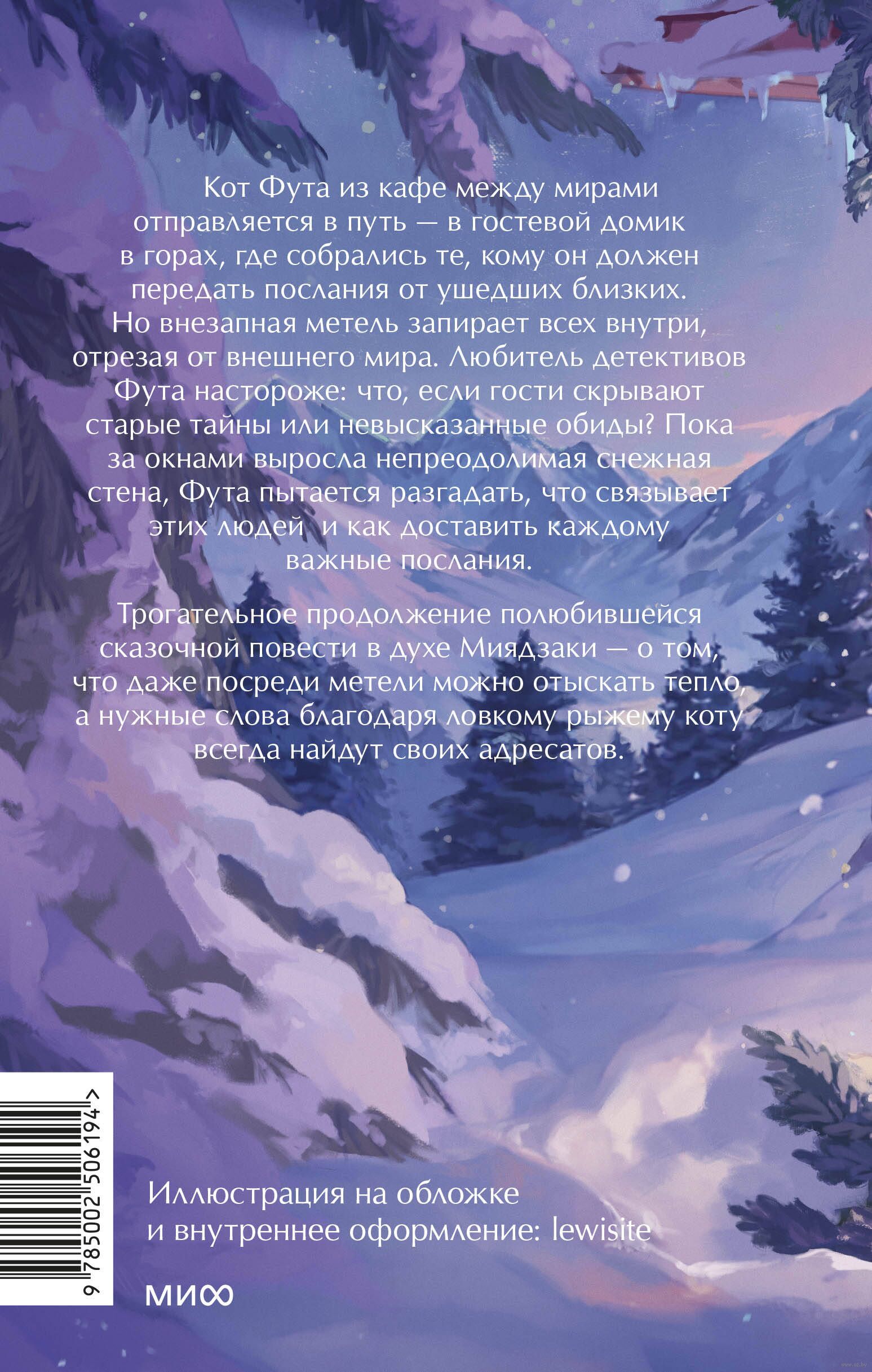 Кот Фута из кафе между мирами отправляется в путь – в гостевой домик в горах, где собрались те, кому он должен передать послания от ушедших близких. Но внезапная метель запирает всех внутри, отрезая от внешнего мира. Любитель детективов Фута настороже: что, если гости скрывают старые тайны или невысказанные обиды? Пока за окнами все засыпает снегом, Фута пытается разгадать, что связывает этих людей и как доставить каждому важные послания.