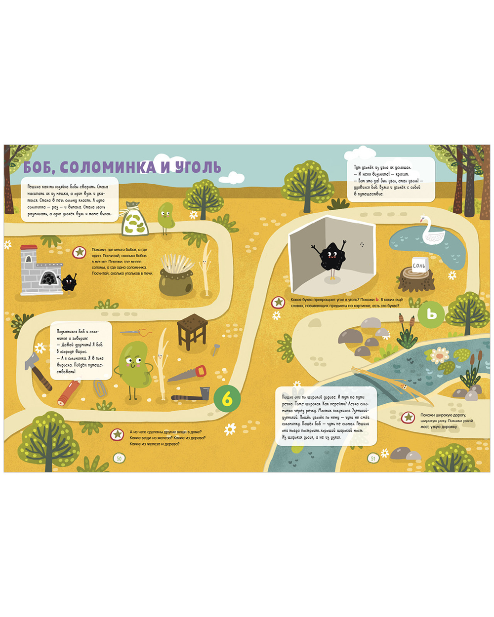 Задания в пособии даны от простого к сложному. Поэтому малыш не сможет пройти дальше в игре, пока не ответит на вопрос, какая фигура, буква или цифра встретились на пути. Зато преодолев все испытания и добравшись до конца сказки, радости его не будет предела! На каждом занятии ребенок получит задания на развитие всех необходимых навыков и умений: приобретает новые знания, тренирует внимание и память, развивает логику, речь, мелкую моторику и фантазию.