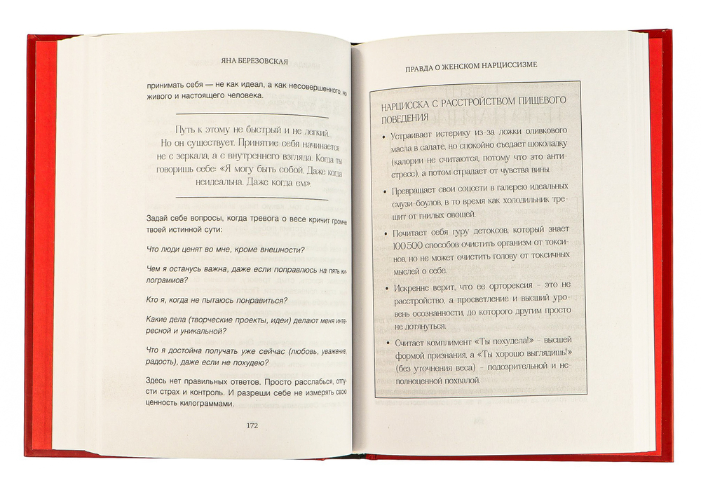 Яна Березовская – психолог и "адвокат нарциссок" жила с подобными чувствами много лет, пока не выяснила, что все это признаки нарциссической травмы. В этой книге Яна не осуждает, а эмпатично и профессионально объясняет, как формируется женский нарциссизм и почему с ним так больно жить. Она уверена: нарциссизм – не приговор, а защитный механизм психики, который можно понять и перестроить.