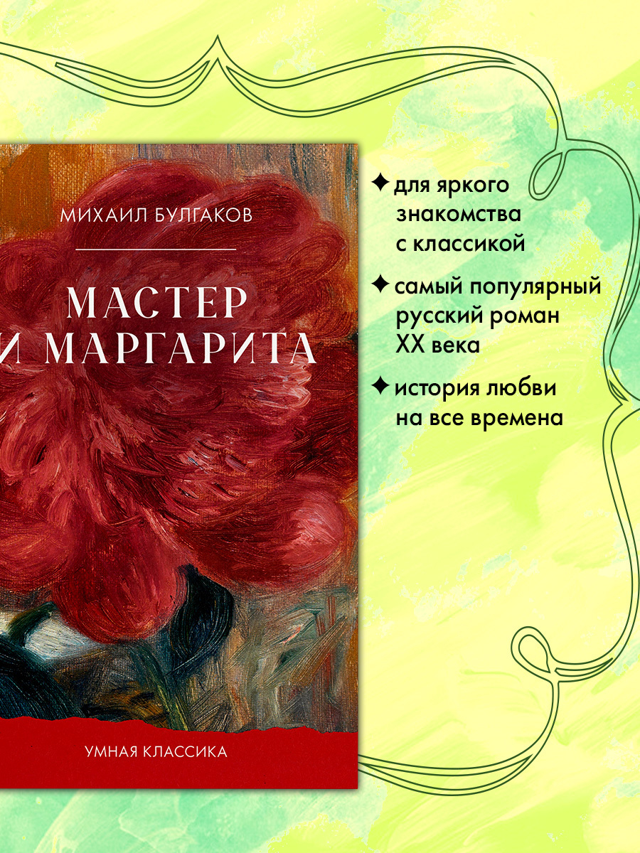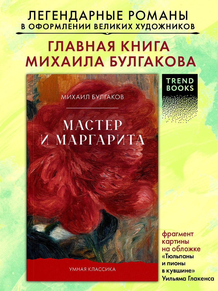 Легендарный роман Михаила Булгакова "Мастер и Маргарита" – это золотая классика, художественная литература для читателей всех возрастов. Издательство Clever представляет: классическая литература с полотнами великих художников на обложках, полный текст без сокращений. Иллюстрация на обложке книги про любовь "Мастер и Маргарита" – фрагмент картины "Тюльпаны и пионы в кувшине" Уильяма Глакенса. Полотна великих художников дополняют книги классика, книги романы.