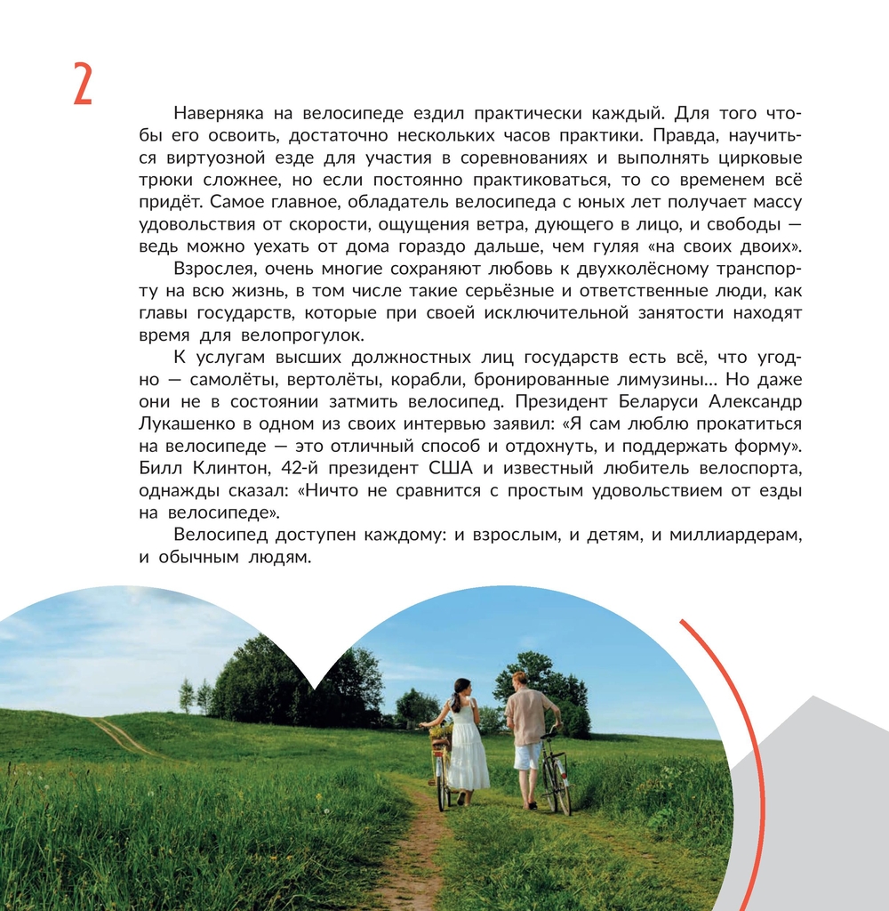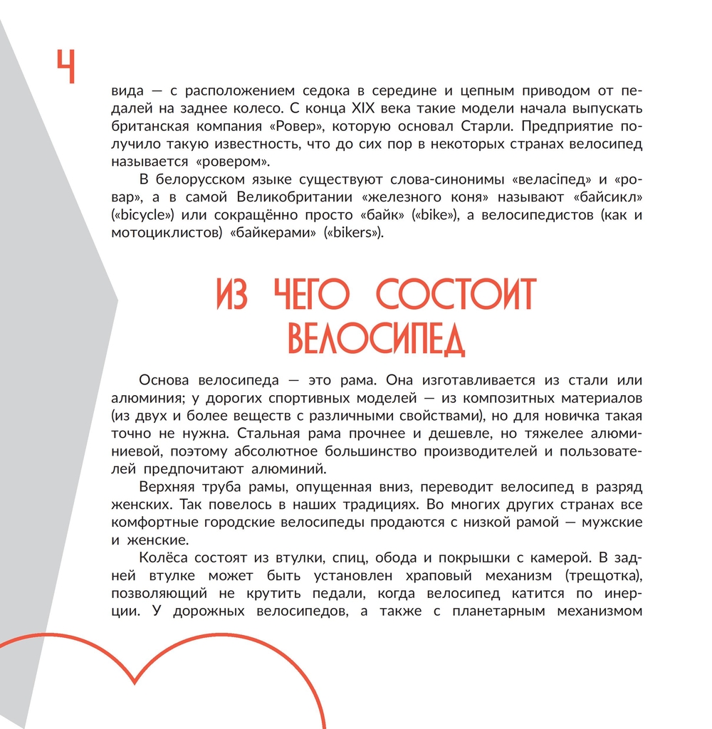 Книга рассказывает о велосипеде, его изобретении, устройстве, преимуществах как вида транспорта, различных моделях, хранении, а также о связанных с ним правилах дорожного движения и др.