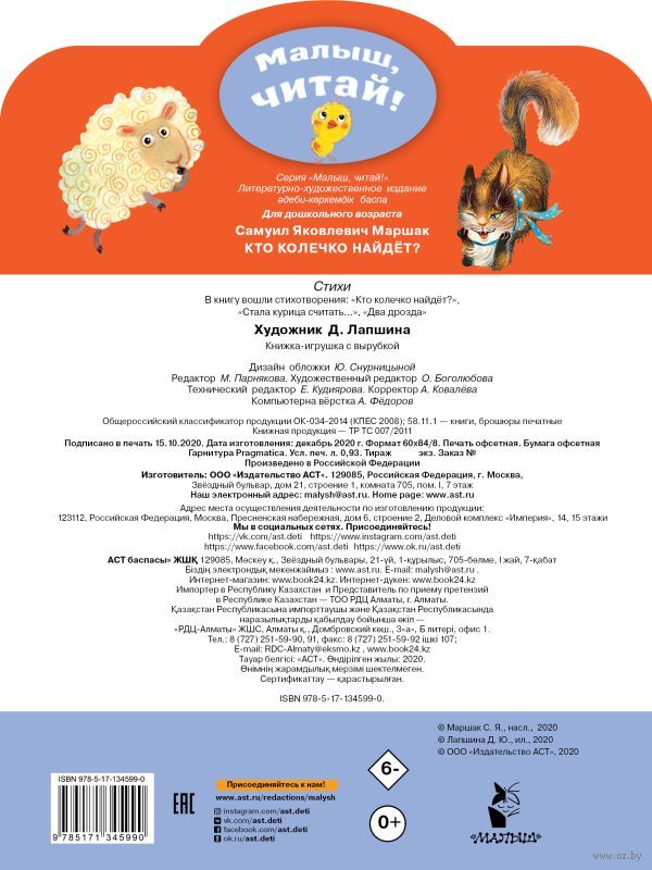| Изготовитель | Творческое кооперативное объединение «АСТ». 129085, РФ, г. Москва, б-р Звездный, 21, стр. 1 |