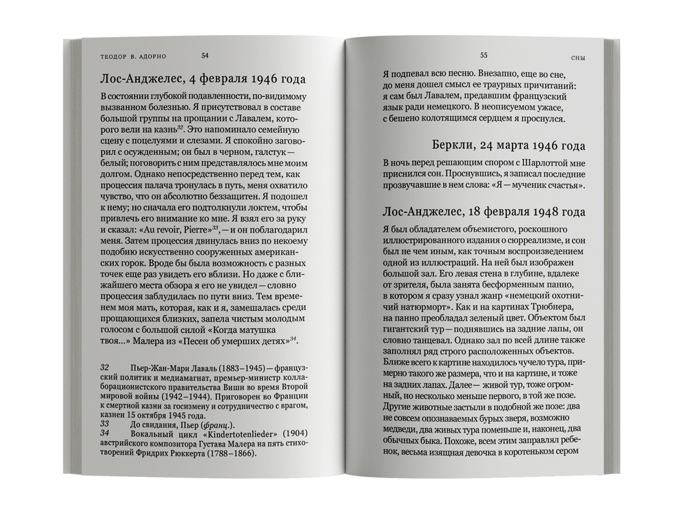 Известный немецкий философ, социолог, теоретик музыки и композитор Теодор Визенгрунд-Адорно (1903–1969) записывал свои сны на протяжении последних двадцати пяти лет жизни.