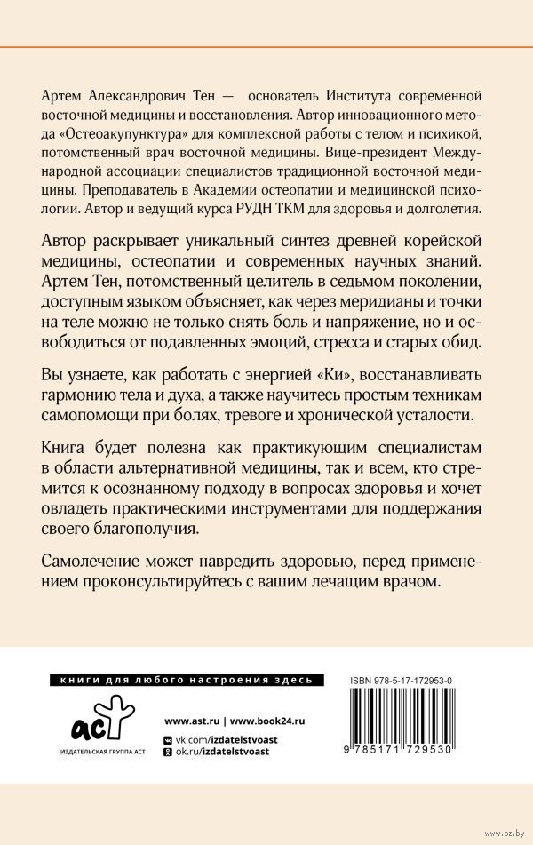Книга "Остеоакупунктура. Гармония тела и духа через традиции восточной медицины" – уникальный синтез древней корейской медицины, остеопатии и современных научных знаний. Автор, потомственный целитель в седьмом поколении, доступным языком объясняет, как через меридианы и точки на теле можно не только снять боль и напряжение, но и освободиться от подавленных эмоций, стресса и старых обид.