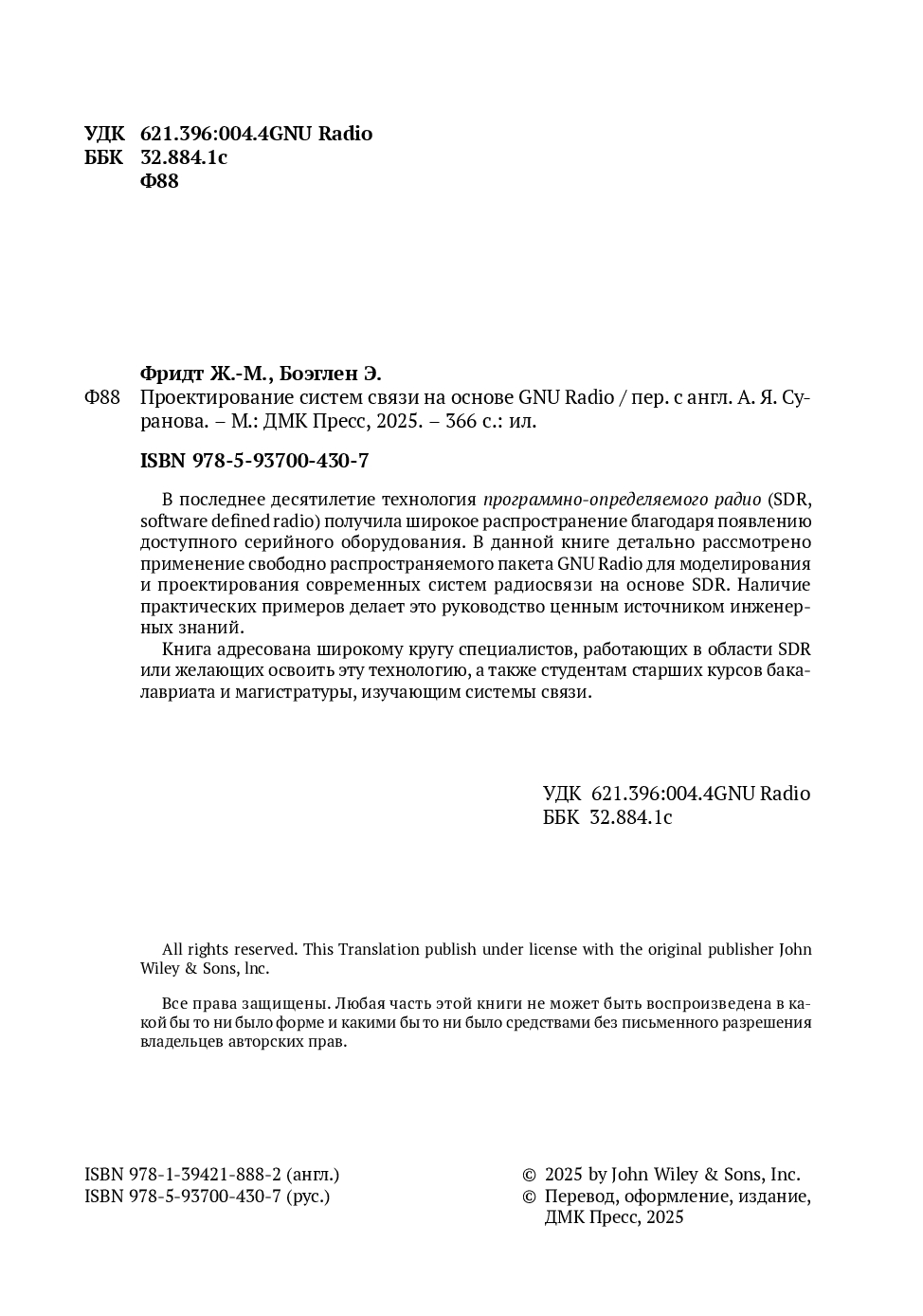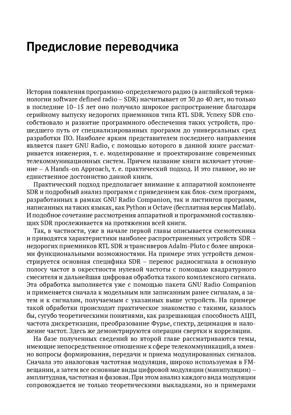 Издание адресовано широкому кругу специалистов, работающих в области SDR или желающих освоить эту технологию, а также студентам, изучающим системы связи.