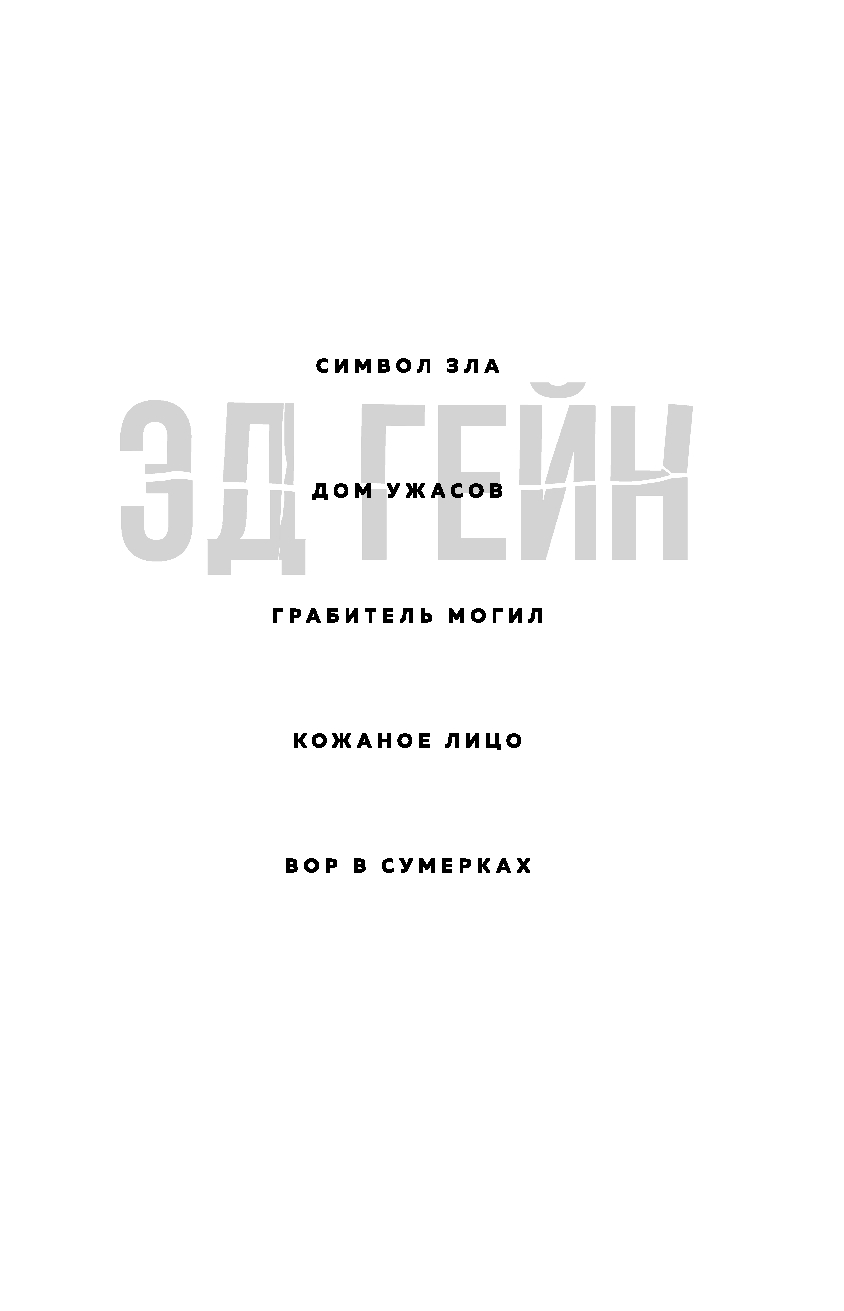 Книга "Эд Гейн" – правдивая и холодящая душу история о самом известном серийном убийце США Эде Гейне, превратившем свою невзрачную ферму в человеческую бойню и место изготовления мебели, посуды и одежды из частей тел. Днем он вел обычную жизнь, никогда не отказывал в помощи, а ночью устраивал самые омерзительные и мрачные ритуалы. Его больные фантазии легли в основу культовых фильмов ужасов "Психо" и "Молчание ягнят".