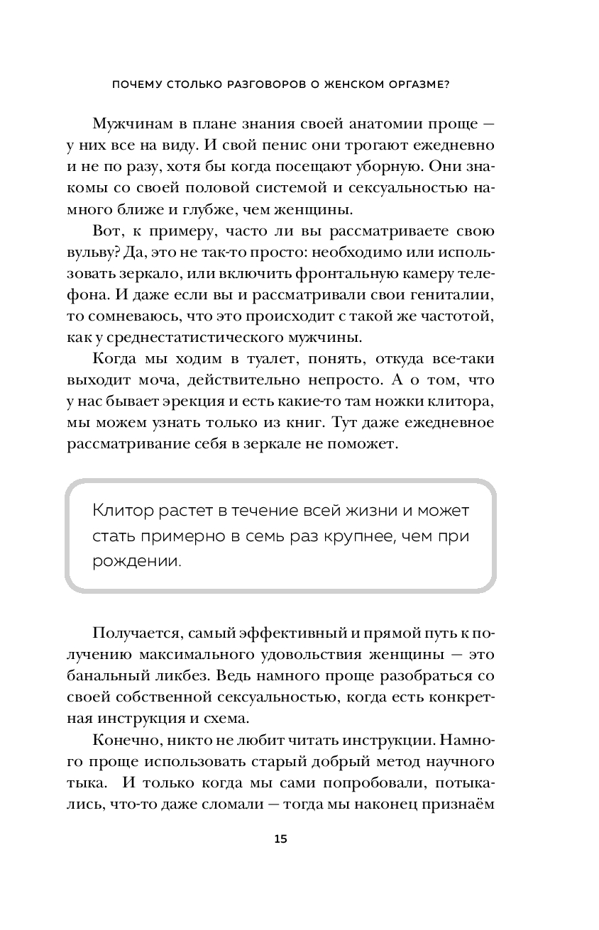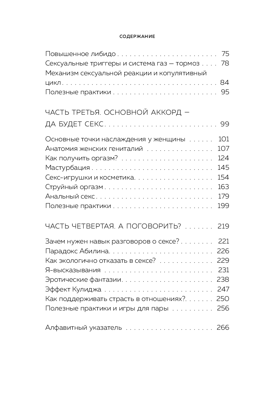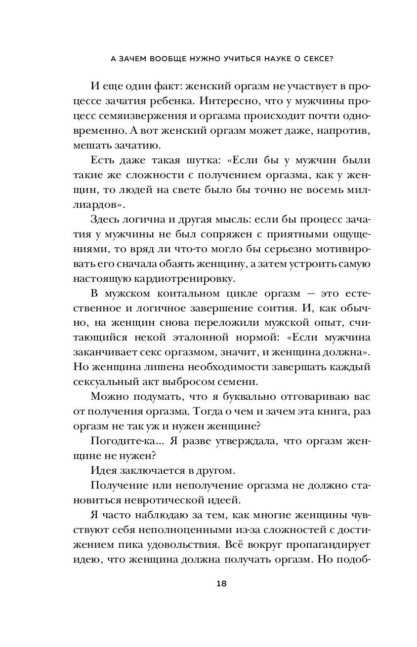 Эту книгу Полина Девочкина, практикующий сексолог-психолог и автор блога keksfakt, постаралась сделать в виде инструкции для женщин, желающих разобраться в том, как управлять желанием секса, как разбудить свои эрогенные зоны, как справиться со своими загонами и предубеждениями и, в конце концов, как легко получать оргазмы с любым партнером.