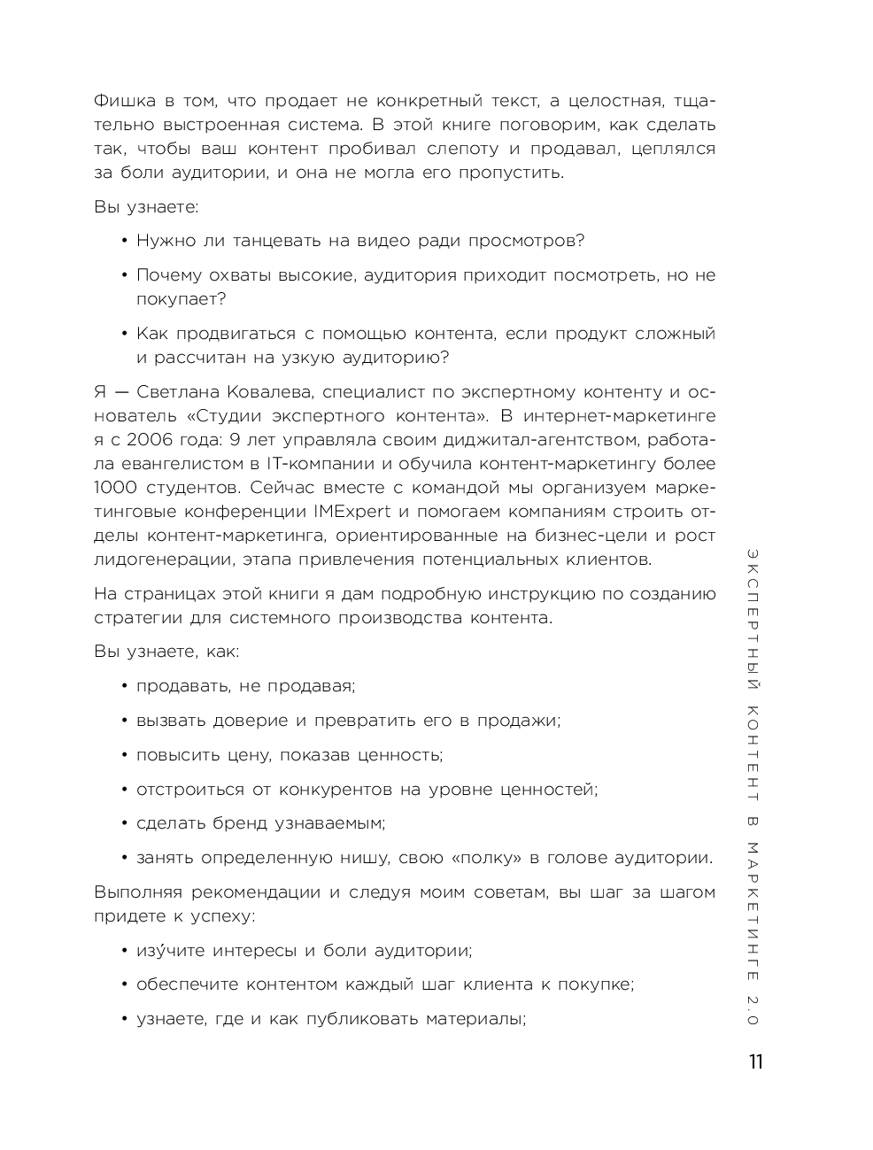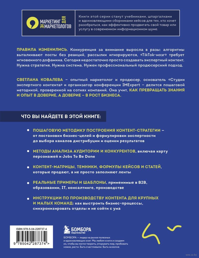 Светлана Ковалева – опытный маркетолог и продюсер, основатель "Студии экспертного контента" и организатор конференции IMExpert – делится пошаговой методикой, проверенной на сотнях компаний. Она учит, как превращать знания и опыт в доверие, а доверие – в рост бизнеса.