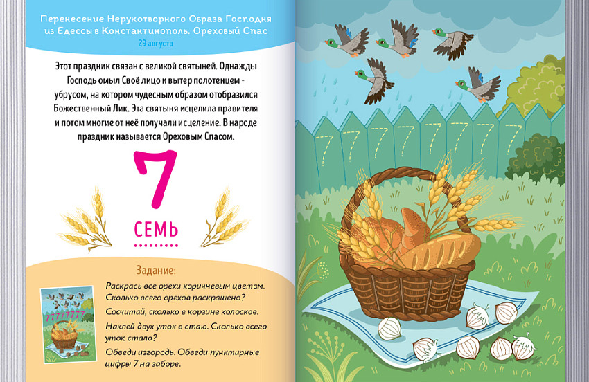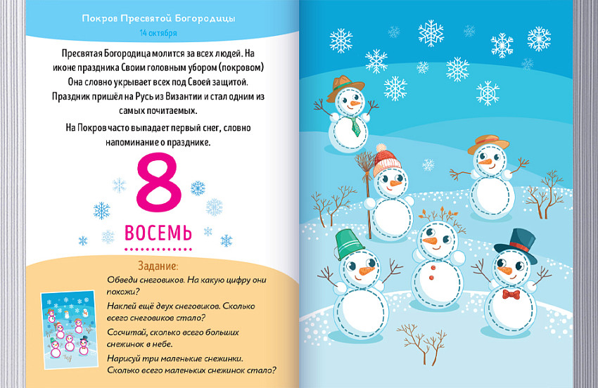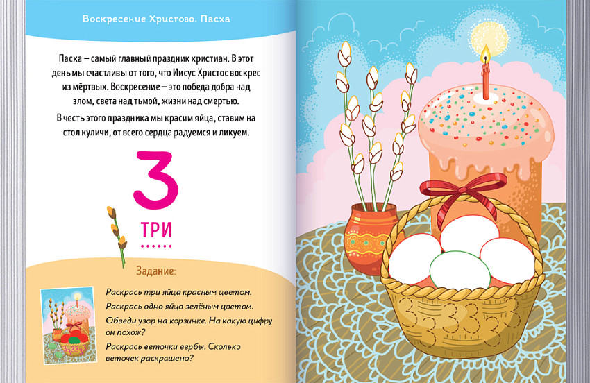 Эта книга поможет малышу не только запомнить счет до 10, но и познакомиться с основными православными праздниками. Занимаясь с наклейками и обводя цифры по пунктиру, ребёнок будет развивать мелкую моторику. В конце книги есть примеры на счёт до 10.