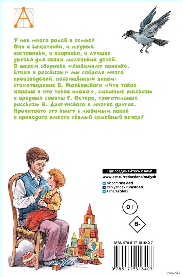 Прочитайте стихотворения А. Барто, Э. Успенского, Г. Остера, Дины Бурачевской, рассказы В. Драгунского и М. Зощенко и других знаменитых авторов. Иллюстрации к книге создали художники Э. Булатов и О. Васильев, А. Халилова, Н. Воронцов и другие.