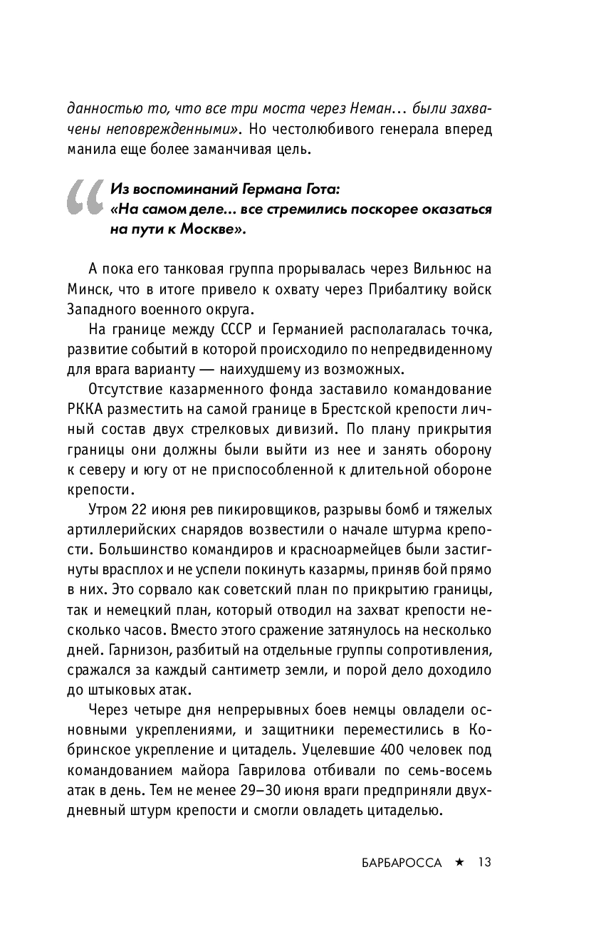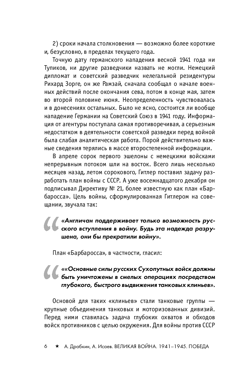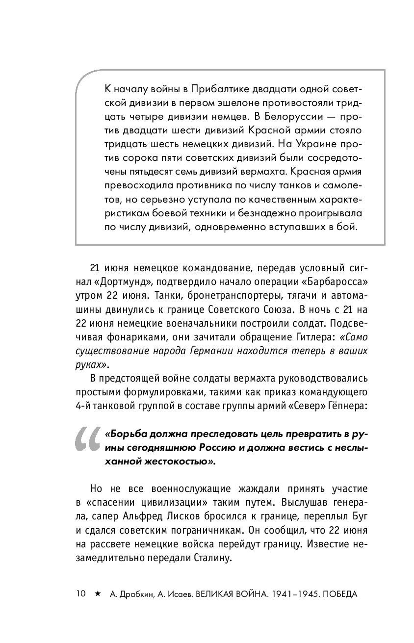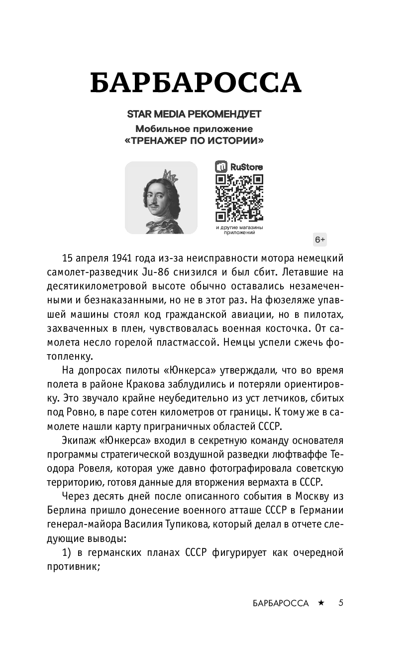 Книга последовательно описывает ключевые события Великой Отечественной войны, начиная с плана "Барбаросса" и заканчивая битвой за Берлин. Авторы анализируют тактические ошибки и стратегические просчеты обеих сторон, что позволяет более глубоко понять ход военных действий и их итог. Особый стиль повествования позволит не только познакомиться с масштабными военными операциями и стратегическими решениями, но и проникнуться личными драмами и историями участников этих событий. Издание станет незаменимым источником знаний для всех, кто хочет глубже понять события 1941–1945 годов, почувствовать дух времени и ещё раз вспомнить о той страшной цене, которую пришлось заплатить за победу.