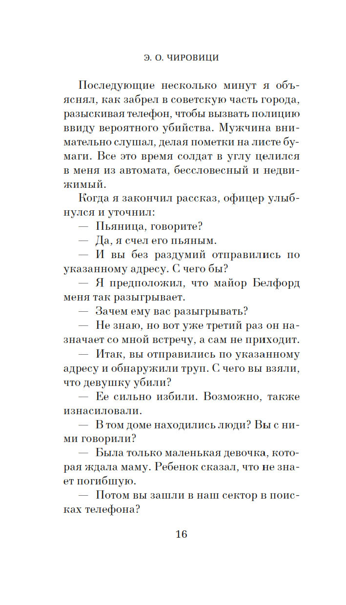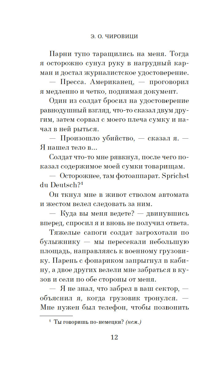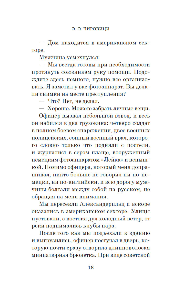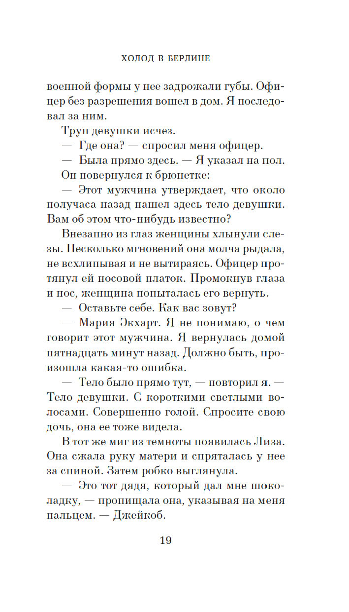 Джейкоб намерен доискаться правды. И у американских властей, и у советских свой интерес в этом деле, вот только никого не заботит участь лежавшей на полу женщины. Кто она? Может, она все же была жива и, очнувшись, ушла сама? А если нет, кто и куда унес тело? Кажется, несчастной уготовано стать разменной монетой в планах сверхдержав. Как и любому, кто попытается выяснить ее судьбу…
