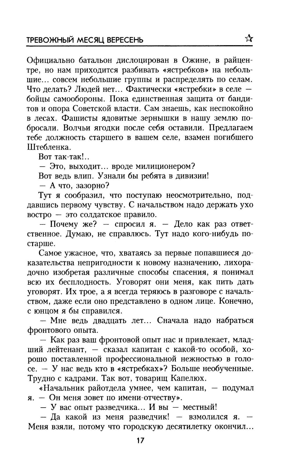 Сентябрь 1944 года. Фронт откатился далеко на запад от затерявшегося в лесной глуши украинского села, но продолжает рыскать в его окрестностях ожидающая неведомо чего банда бандеровцев. В схватку с нею вступают "ястребки" – бойцы истребительного батальона, которые не хотят, чтобы фашистские прихвостни хозяйничали на их родной земле. Широко известный роман был экранизирован на киностудии им. Довженко в 1976 году.