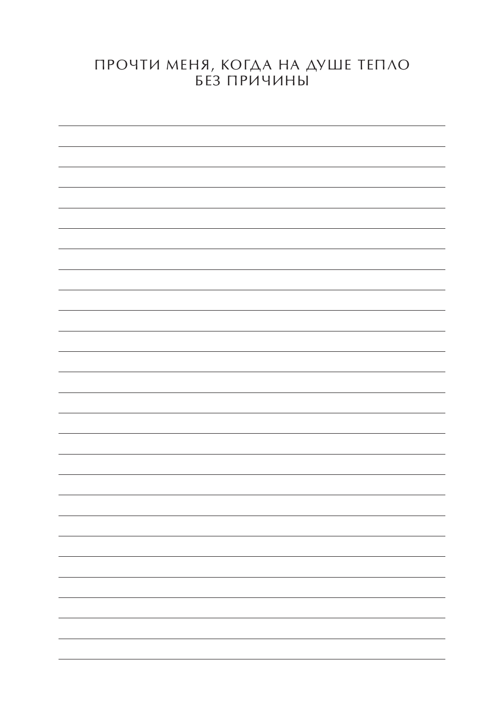 Блокнот подходит как подарок для всех: другу, партнеру, родителям, детям. Его можно заполнять постепенно – по одной странице в день, или сразу, чтобы подарить готовое собрание ваших посланий. Получатель будет возвращаться к нему столько раз, сколько нужно, а ваши слова будут всегда с ним.