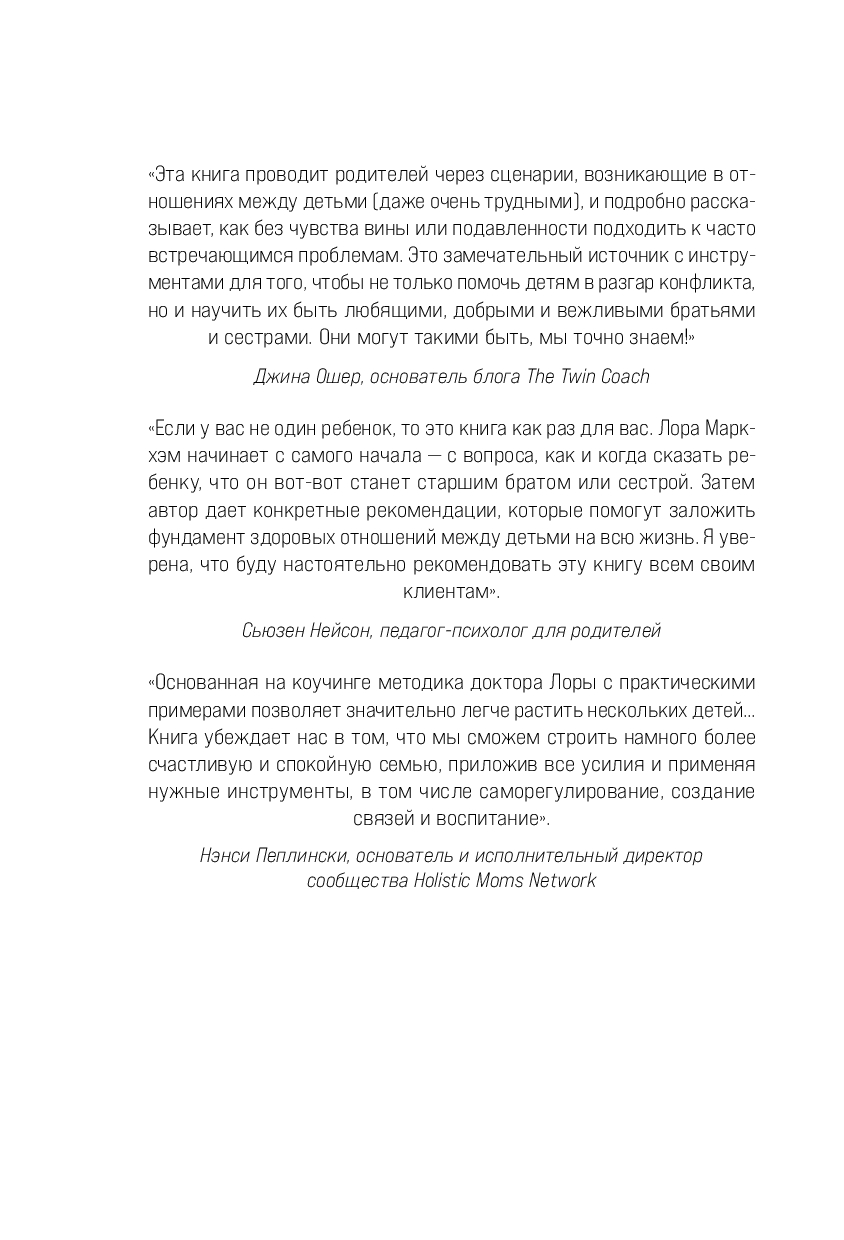 Лора Маркхэм – мировой эксперт по воспитанию и детский психолог с многолетним опытом – предлагает эффективный метод, который помогает родителям правильно реагировать на конфликты, укреплять связь между детьми и относиться к каждому ребенку с уважением и пониманием.